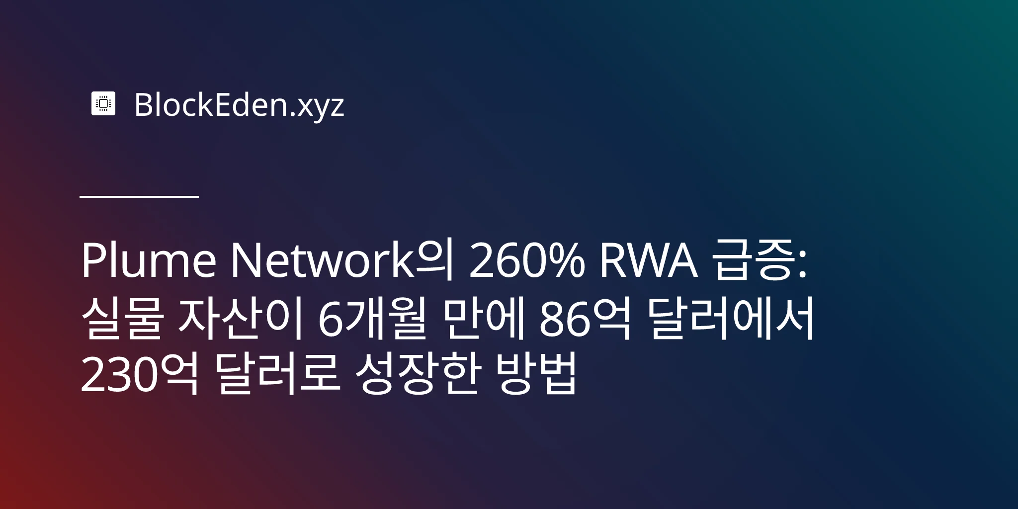 Plume Network의 260% RWA 급증: 실물 자산이 6개월 만에 86억 달러에서 230억 달러로 성장한 방법