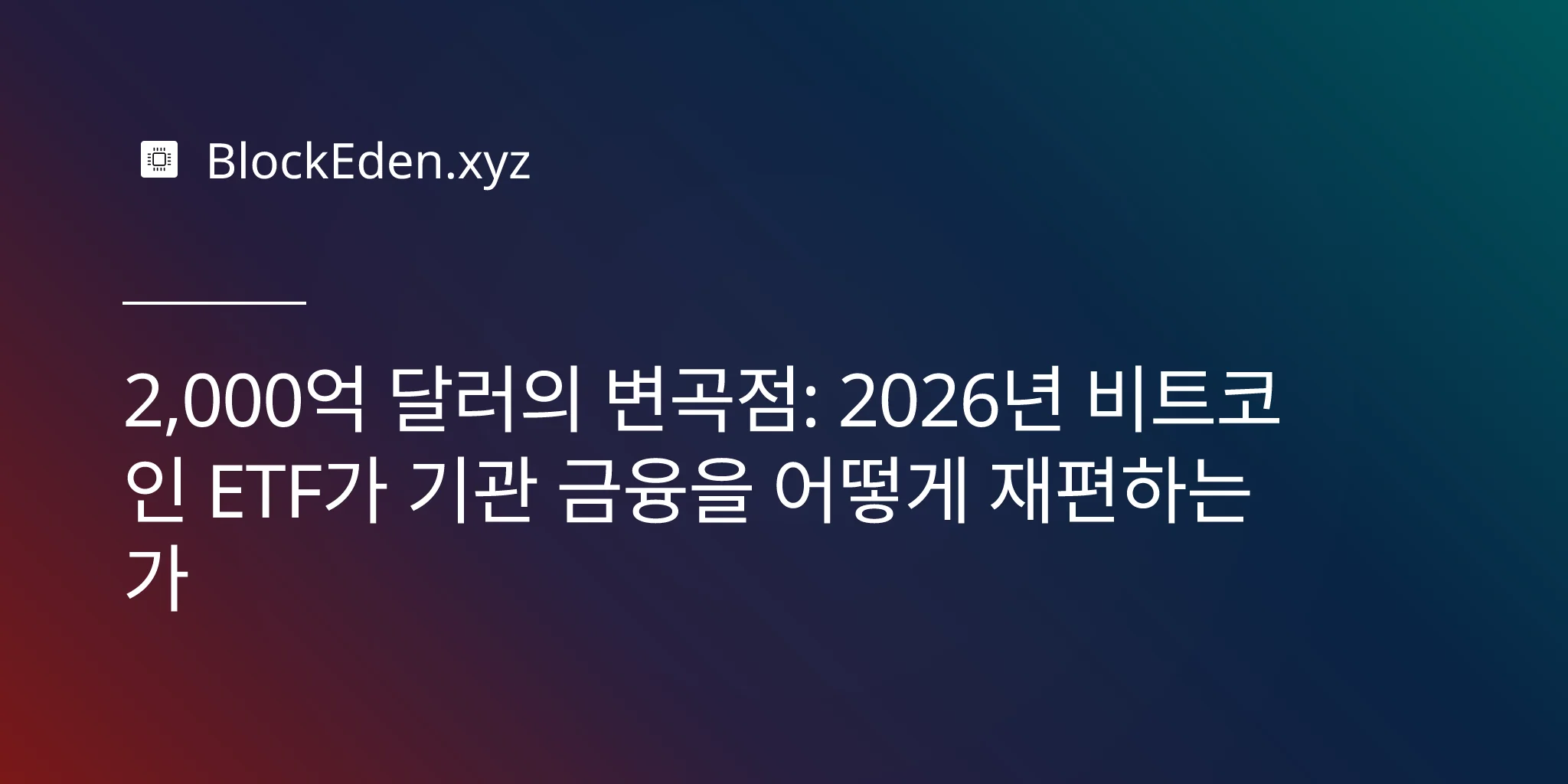 2,000억 달러의 변곡점: 2026년 비트코인 ETF가 기관 금융을 어떻게 재편하는가