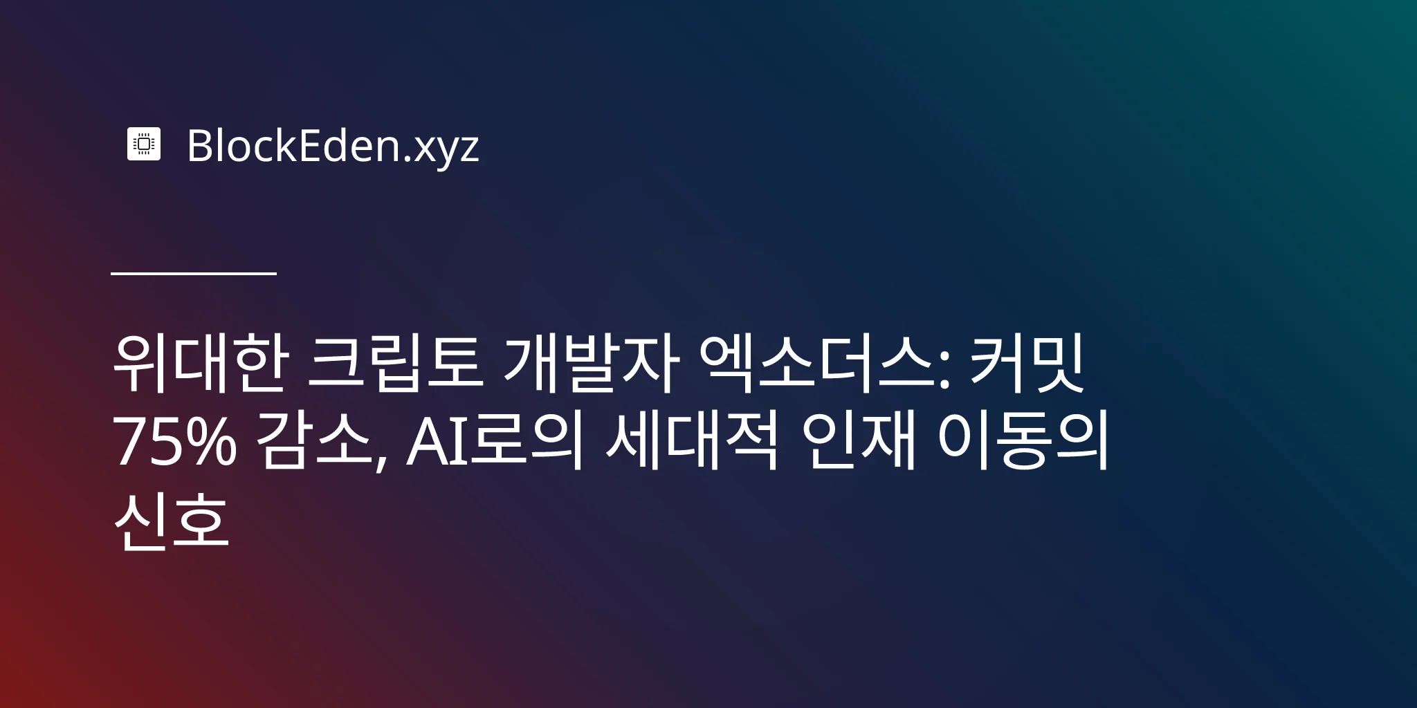 크립토 코드 커밋의 75% 감소는 조종(death knell)이 아니라 시장의 신호입니다. 개발자 인재는 기술 분야에서 가장 희소한 자원이며, 현재 AI는 더 높은 급여, 더 많은 자금 지원, 더 빠른 경력 성장, 그리고 대부분의 엔지니어에게 더 즉각적인 변화를 체감하게 하는 문제들을 제공하고 있습니다.