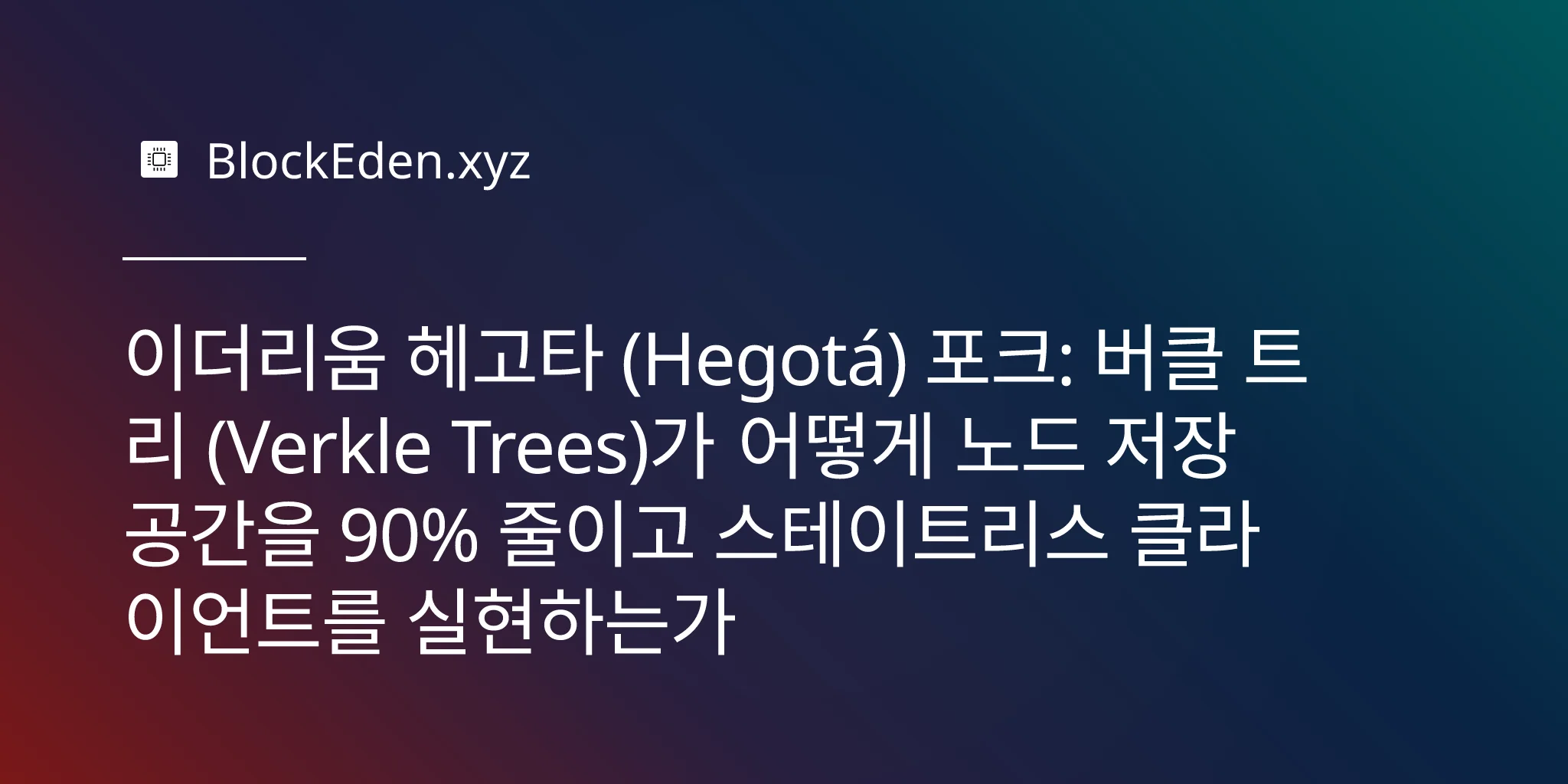 이더리움 헤고타 (Hegotá) 포크: 버클 트리 (Verkle Trees)가 어떻게 노드 저장 공간을 90% 줄이고 스테이트리스 클라이언트를 실현하는가