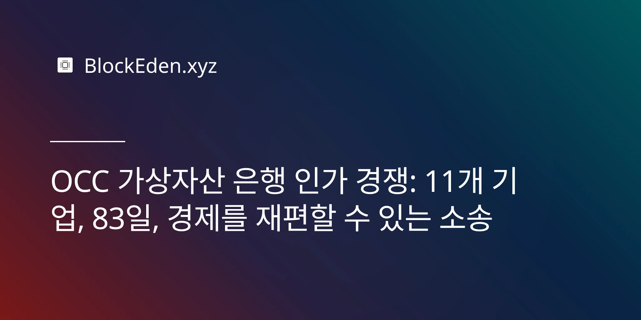 OCC 가상자산 은행 인가 경쟁: 11개 기업, 83일, 경제를 재편할 수 있는 소송