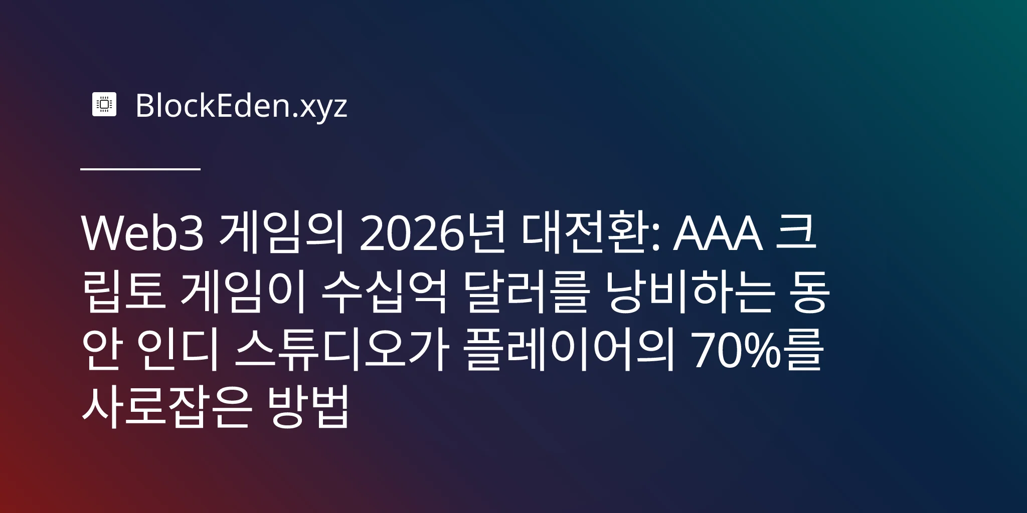Web3 게임의 2026년 대전환: AAA 크립토 게임이 수십억 달러를 낭비하는 동안 인디 스튜디오가 플레이어의 70%를 사로잡은 방법