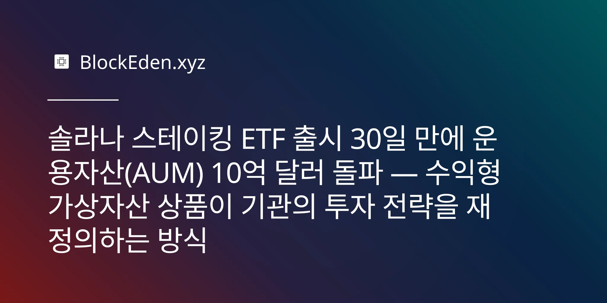 솔라나 스테이킹 ETF 출시 30일 만에 운용자산(AUM) 10억 달러 돌파 — 수익형 가상자산 상품이 기관의 투자 전략을 재정의하는 방식