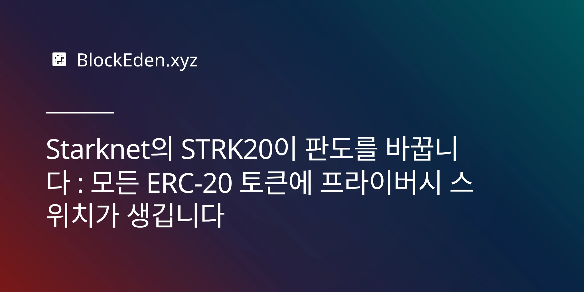 Starknet의 STRK20이 판도를 바꿉니다 : 모든 ERC-20 토큰에 프라이버시 스위치가 생깁니다