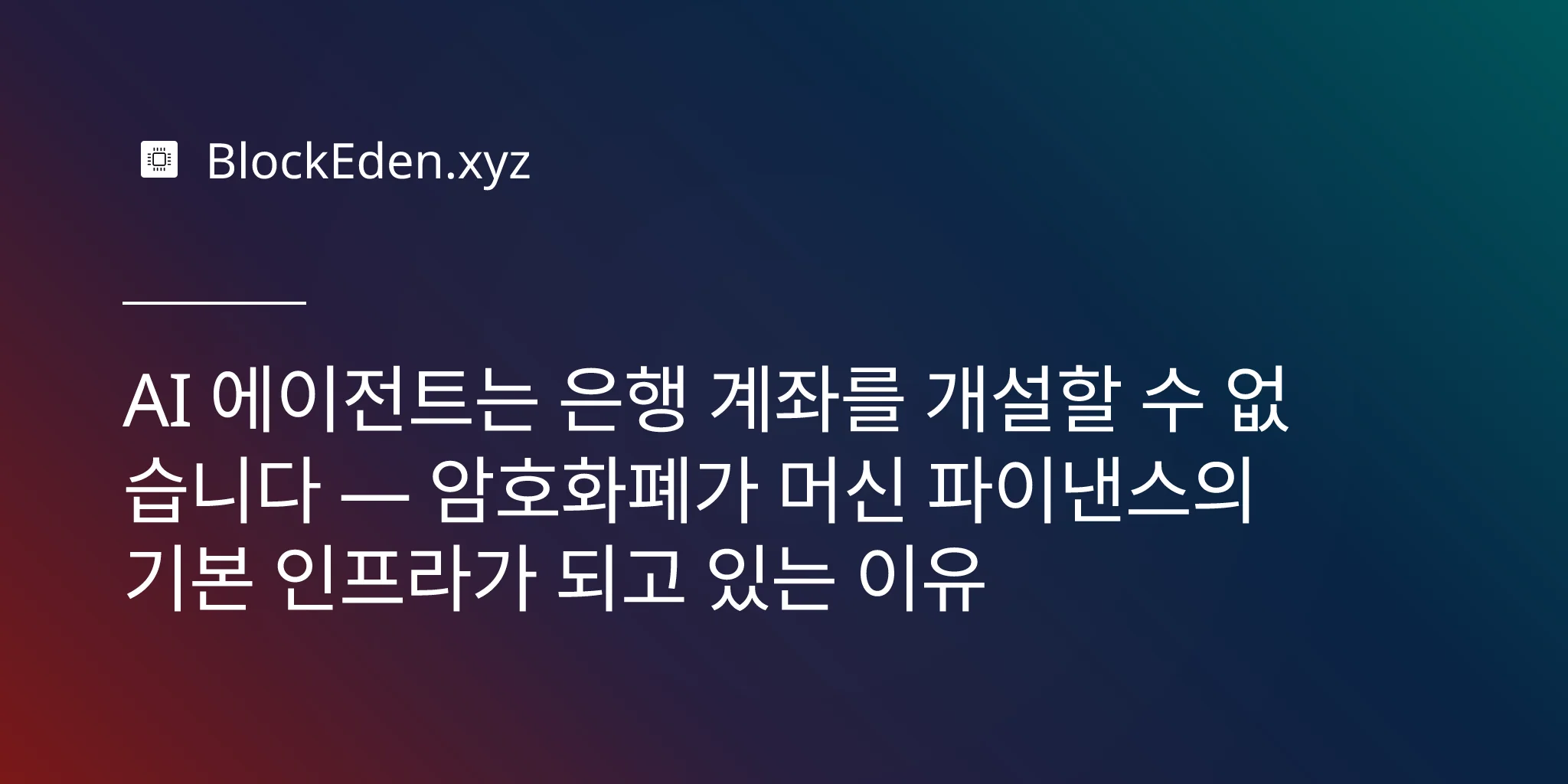 AI 에이전트는 은행 계좌를 개설할 수 없습니다 — 암호화폐가 머신 파이낸스의 기본 인프라가 되고 있는 이유