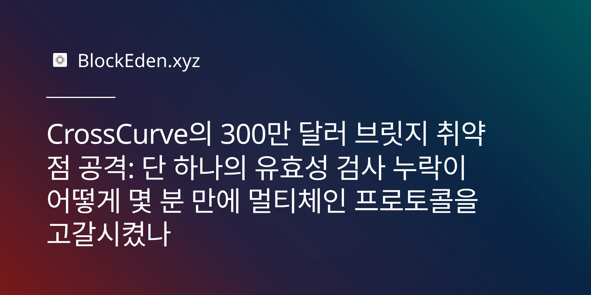CrossCurve의 300만 달러 브릿지 취약점 공격: 단 하나의 유효성 검사 누락이 어떻게 몇 분 만에 멀티체인 프로토콜을 고갈시켰나