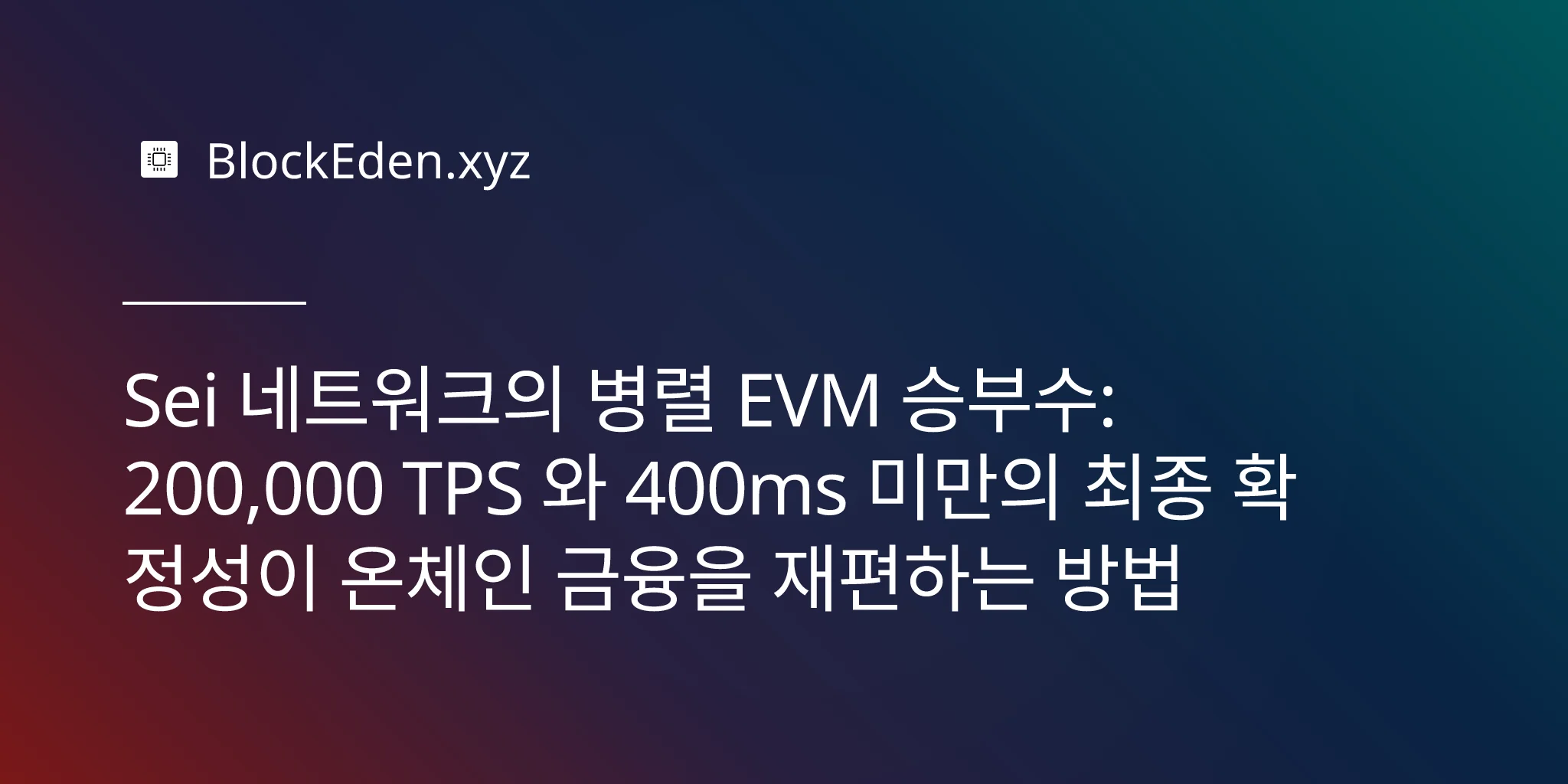 이더리움의 실행 엔진이 현대의 CPU가 스레드를 처리하는 방식처럼 — 하나씩 순차적으로가 아니라 수십 개를 동시에 — 트랜잭션을 처리할 수 있다면 어떨까요? 이것이 바로 Sei 네트워크가 Giga 업그레이드를 통해 걸고 있는 승부수입니다. 이는 완전히 EVM 호환되는 레이어 1에서 초당 200,000건의 트랜잭션(TPS)과 400밀리초 미만의 확정성(finality)을 목표로 바닥부터 다시 구축한 시스템입니다. 실제 운영 환경에서 이 수치들이 유지된다면, Sei는 DeFi를 가능하게 하는 결합성(composability)을 유지하면서도 중앙화 거래소에 필적하는 처리량을 제공하게 될 것입니다.