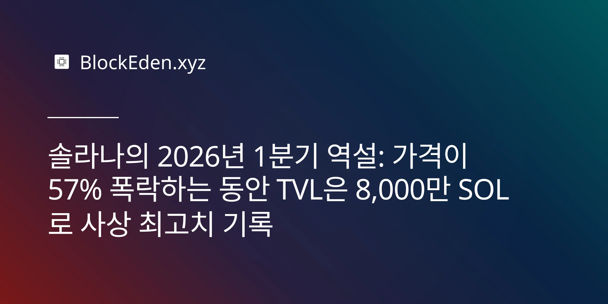 솔라나의 2026년 1분기 역설: 가격이 57% 폭락하는 동안 TVL은 8,000만 SOL로 사상 최고치 기록