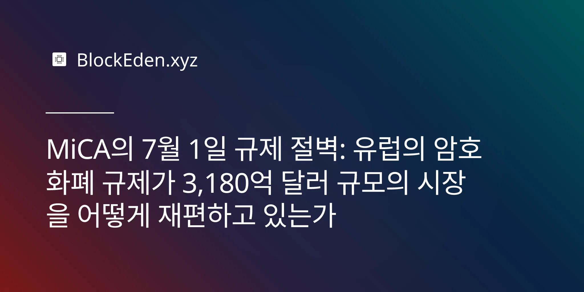 3,180억 달러 규모의 스테이블코인 시장, 유럽 사용자에게 서비스를 제공하는 수천 개의 암호화폐 기업, 그리고 이들을 감독하는 규제 당국 모두가 동일한 현실에 직면해 있습니다. 포괄적인 암호화폐 규제에 대한 MiCA의 거대한 실험이 결정적 인 단계에 진입하려 합니다. 이것이 글로벌 템플릿이 될지 아니면 경고성 사례가 될지는 7월 1일 이후에 벌어질 일에 달려 있습니다.