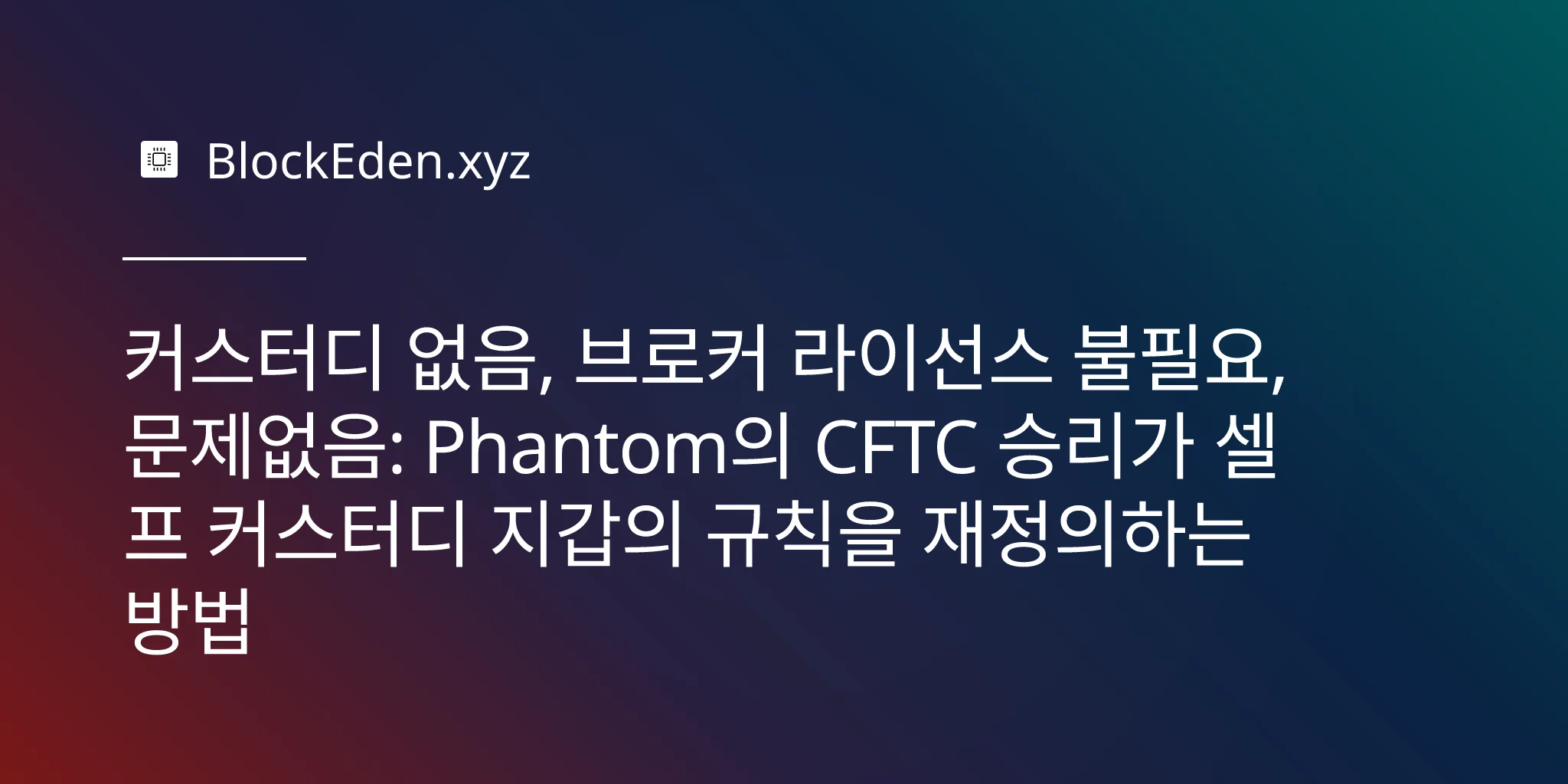 커스터디 없음, 브로커 라이선스 불필요, 문제없음: Phantom의 CFTC 승리가 셀프 커스터디 지갑의 규칙을 재정의하는 방법