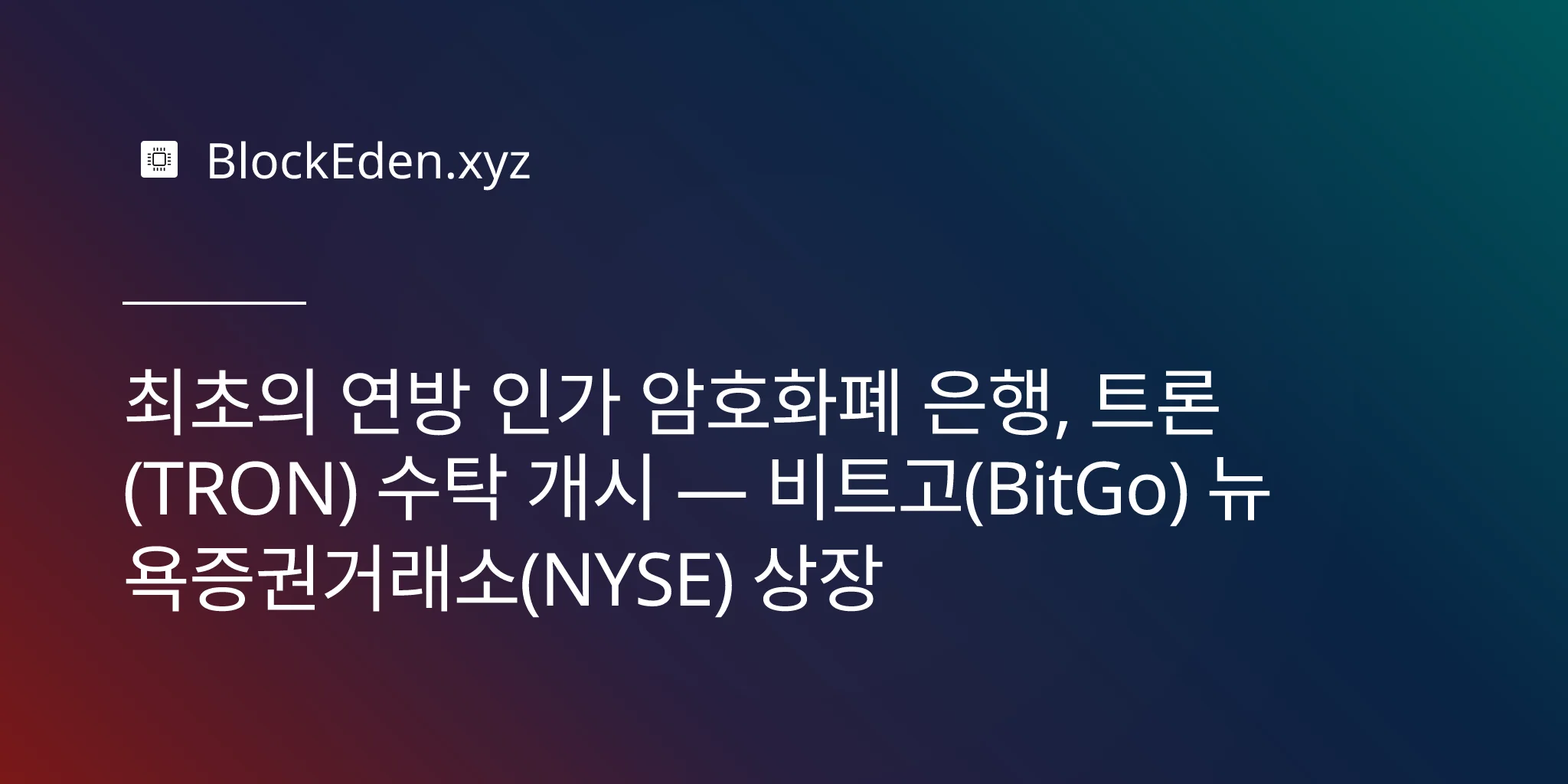 최초의 연방 인가 암호화폐 은행, 트론(TRON) 수탁 개시 — 비트고(BitGo) 뉴욕증권거래소(NYSE) 상장