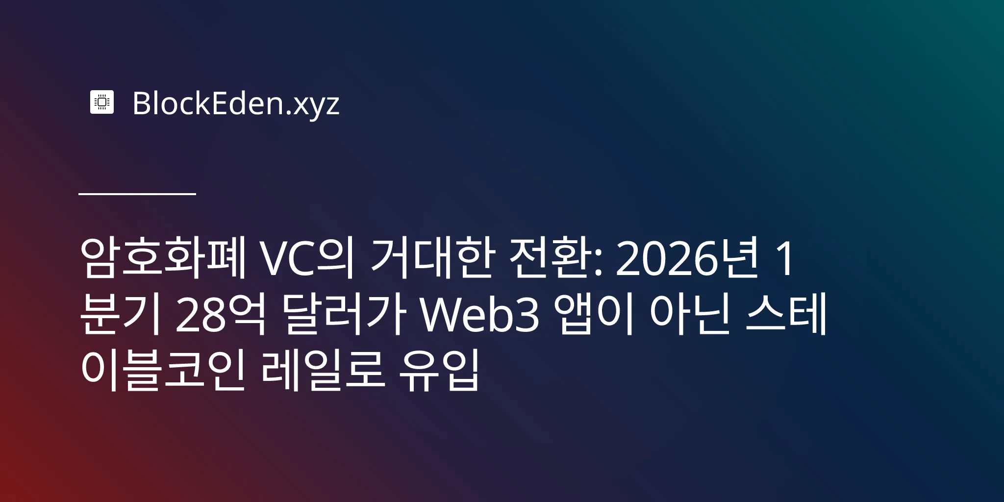 암호화폐 VC의 거대한 전환: 2026년 1분기 28억 달러가 Web3 앱이 아닌 스테이블코인 레일로 유입