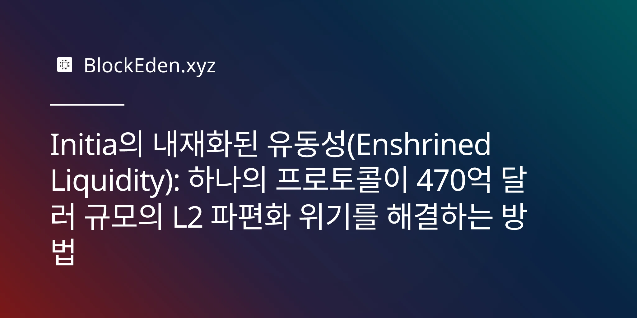 Initia의 내재화된 유동성(Enshrined Liquidity): 하나의 프로토콜이 470억 달러 규모의 L2 파편화 위기를 해결하는 방법