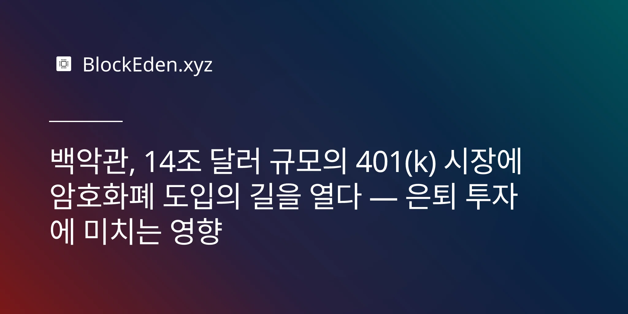 백악관, 14조 달러 규모의 401(k) 시장에 암호화폐 도입의 길을 열다 — 은퇴 투자에 미치는 영향