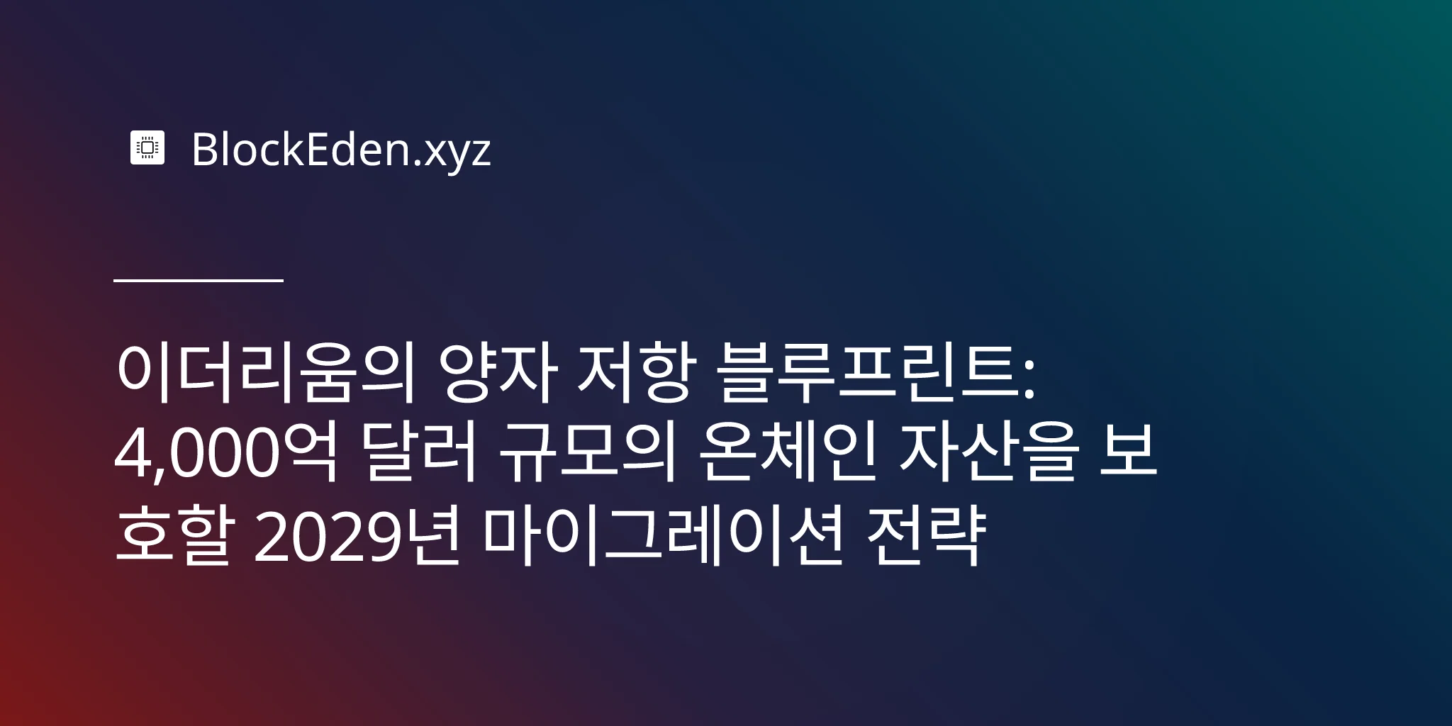 이더리움의 양자 저항 블루프린트: 4,000억 달러 규모의 온체인 자산을 보호할 2029년 마이그레이션 전략