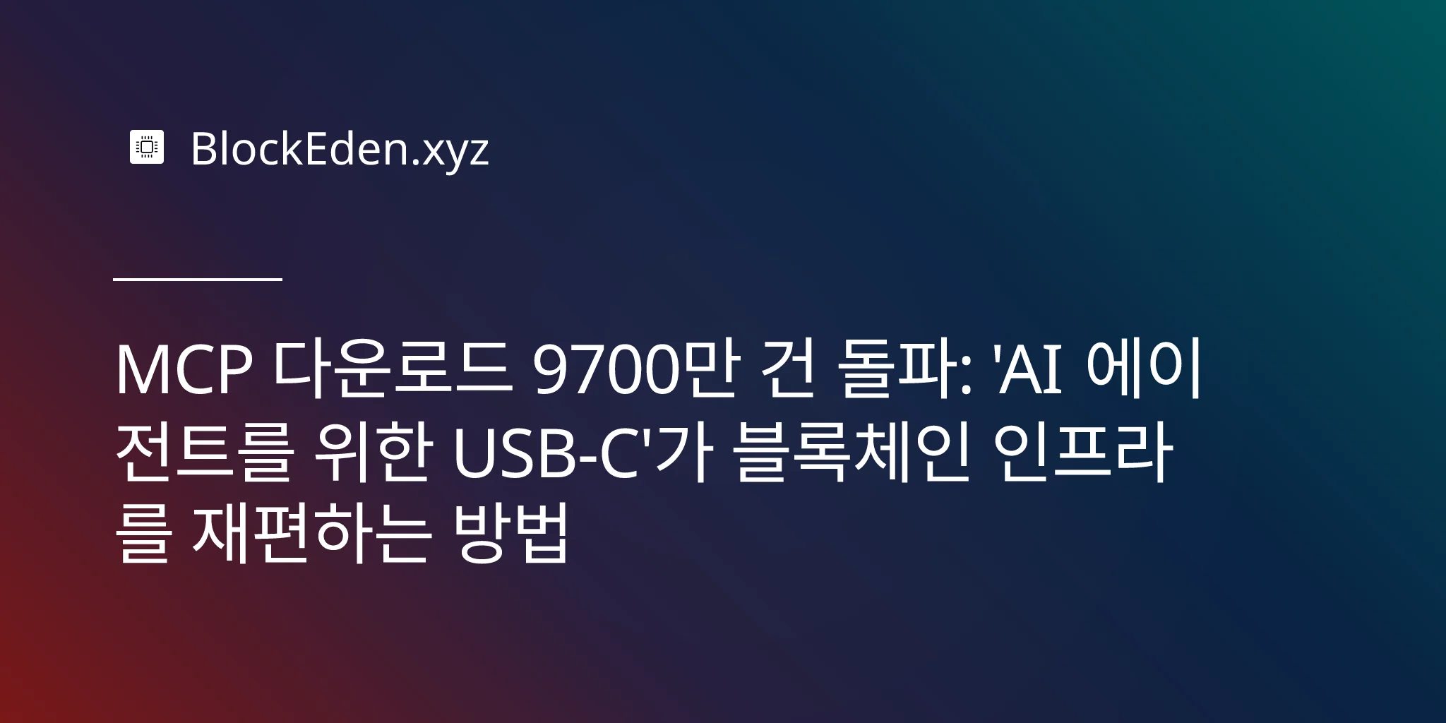 MCP 다운로드 9700만 건 돌파: 'AI 에이전트를 위한 USB-C'가 블록체인 인프라를 재편하는 방법