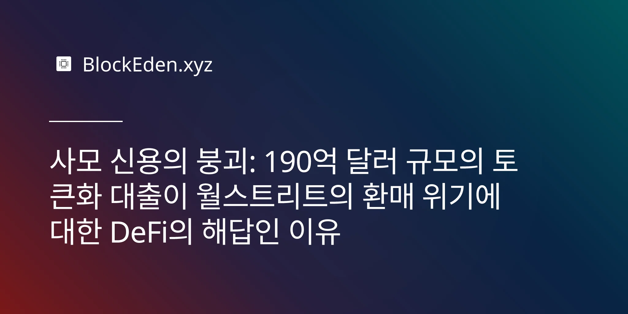 사모 신용의 붕괴: 190억 달러 규모의 토큰화 대출이 월스트리트의 환매 위기에 대한 DeFi의 해답인 이유