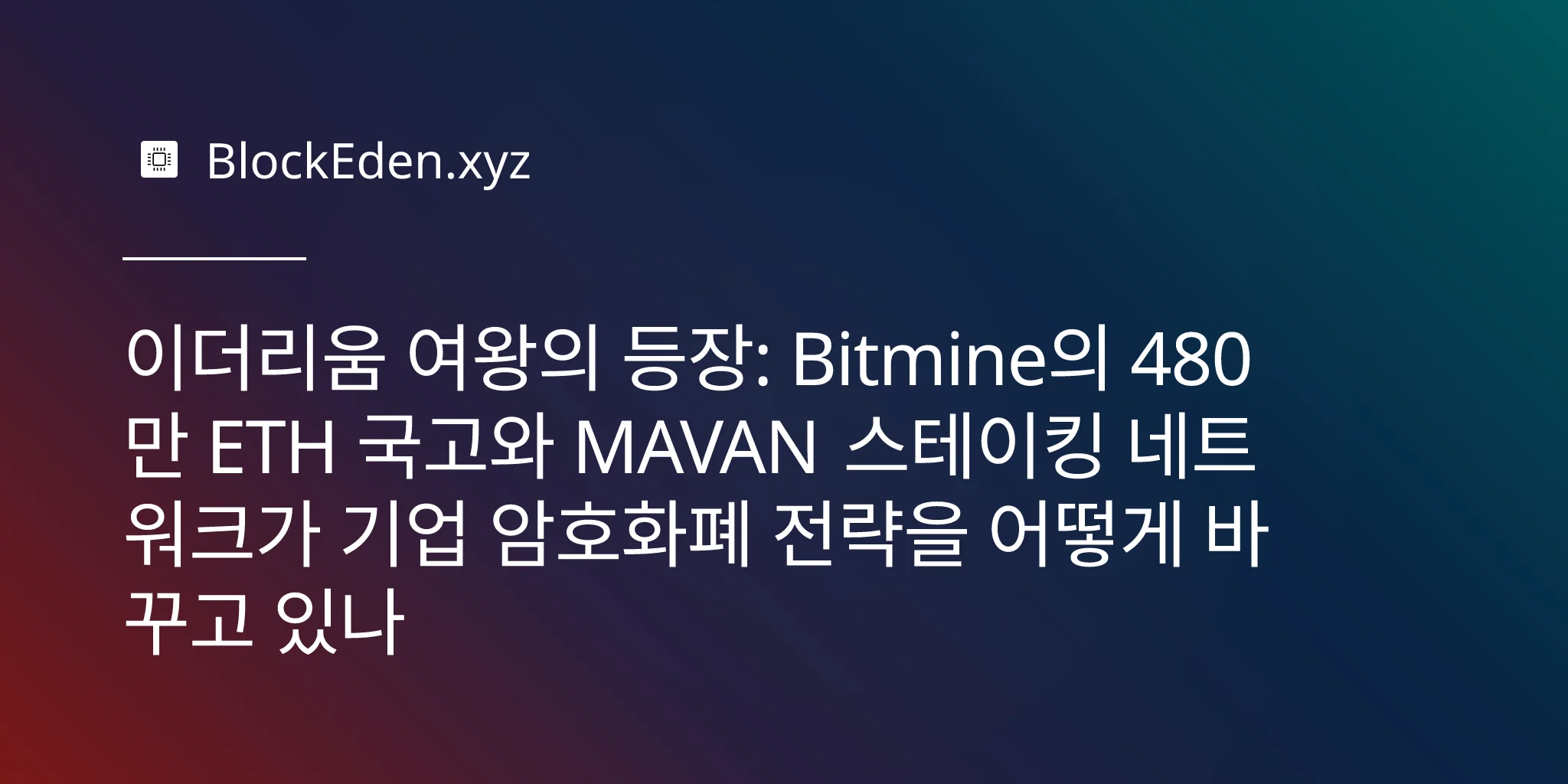 이더리움 여왕의 등장: Bitmine의 480만 ETH 국고와 MAVAN 스테이킹 네트워크가 기업 암호화폐 전략을 어떻게 바꾸고 있나