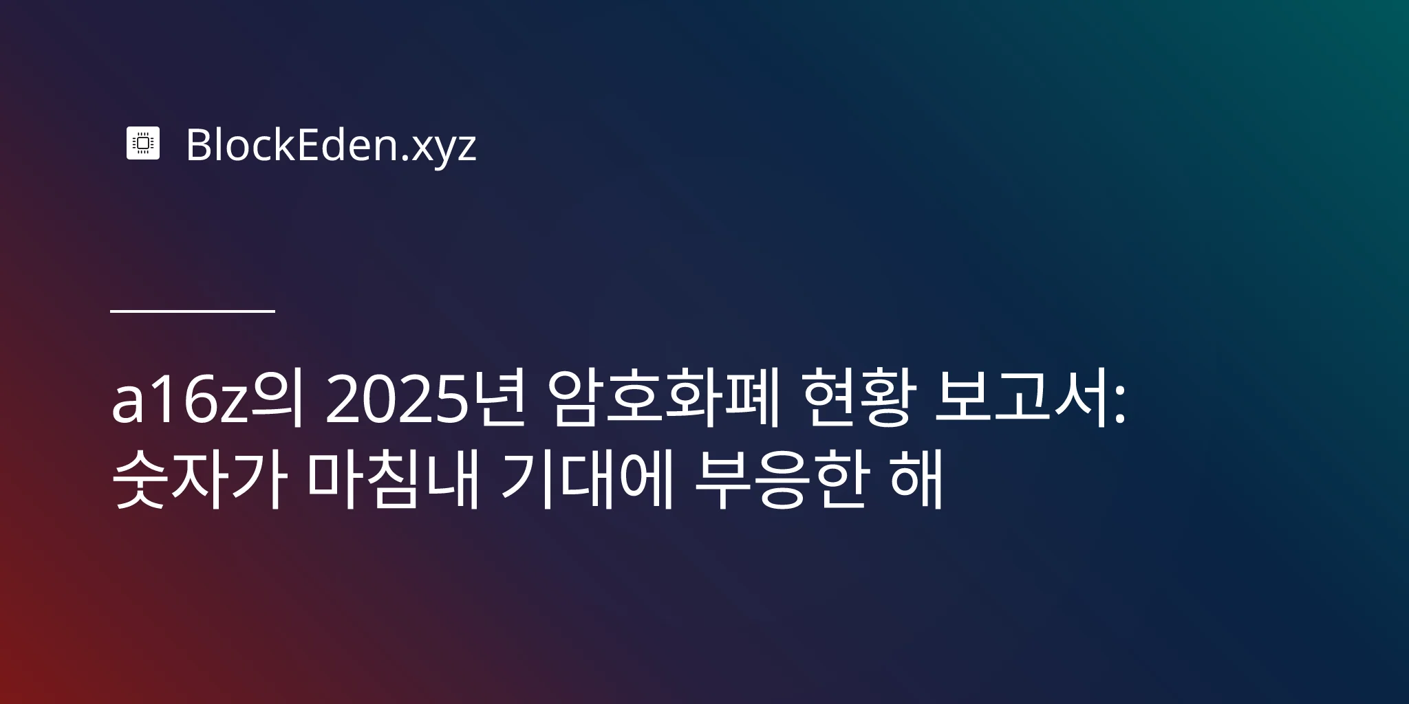 a16z 의 State of Crypto 2025 보고서는 승리를 자축하는 보고서가 아닙니다. 오히려 실제 문제가 어디에 있는지 다시 정의하는 과정입니다. 확장성 전쟁은 대체로 승리했고, 기관 진입로는 열렸으며, 규제 프레임워크가 형성되고 있습니다.