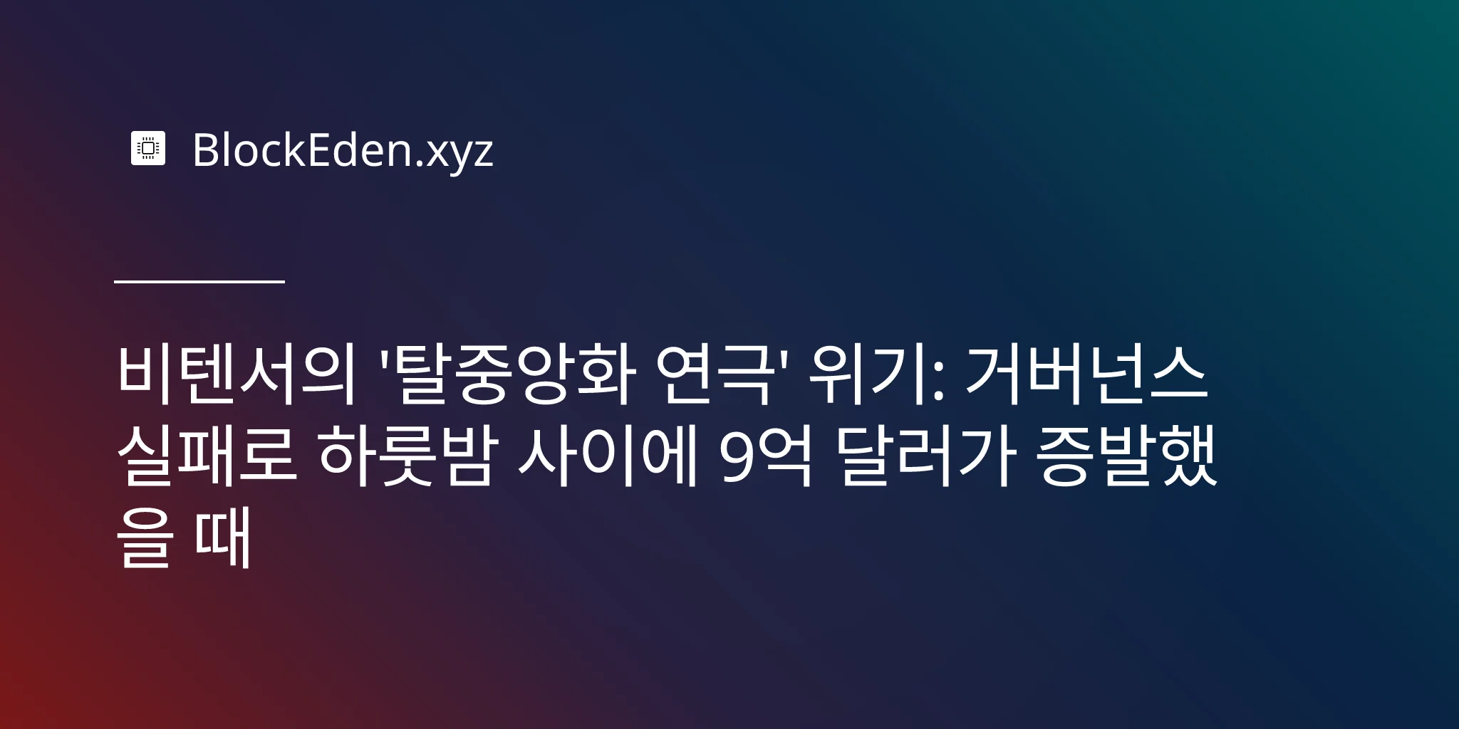 비텐서의 '탈중앙화 연극' 위기: 거버넌스 실패로 하룻밤 사이에 9억 달러가 증발했을 때