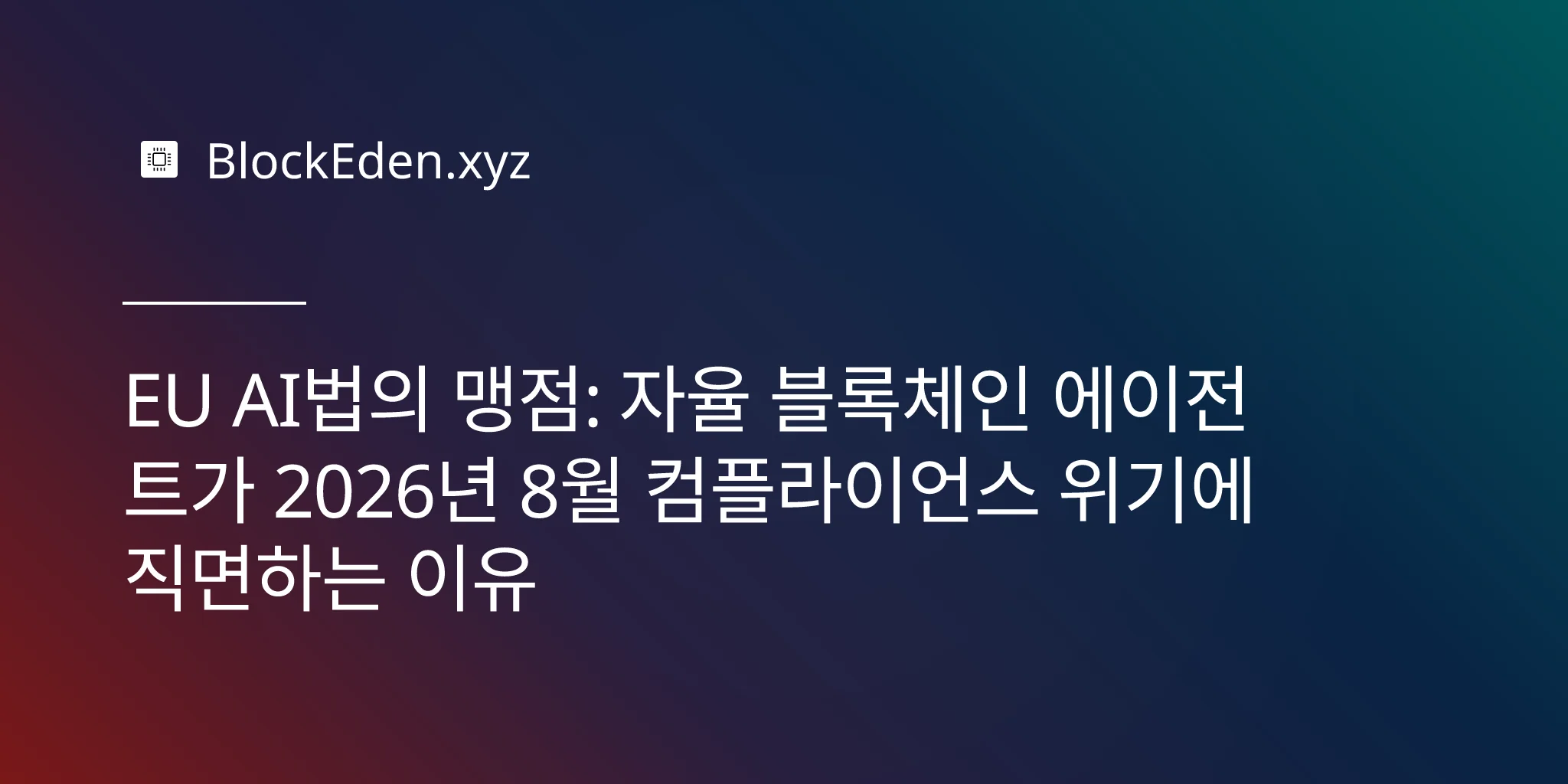 EU AI법의 맹점: 자율 블록체인 에이전트가 2026년 8월 컴플라이언스 위기에 직면하는 이유