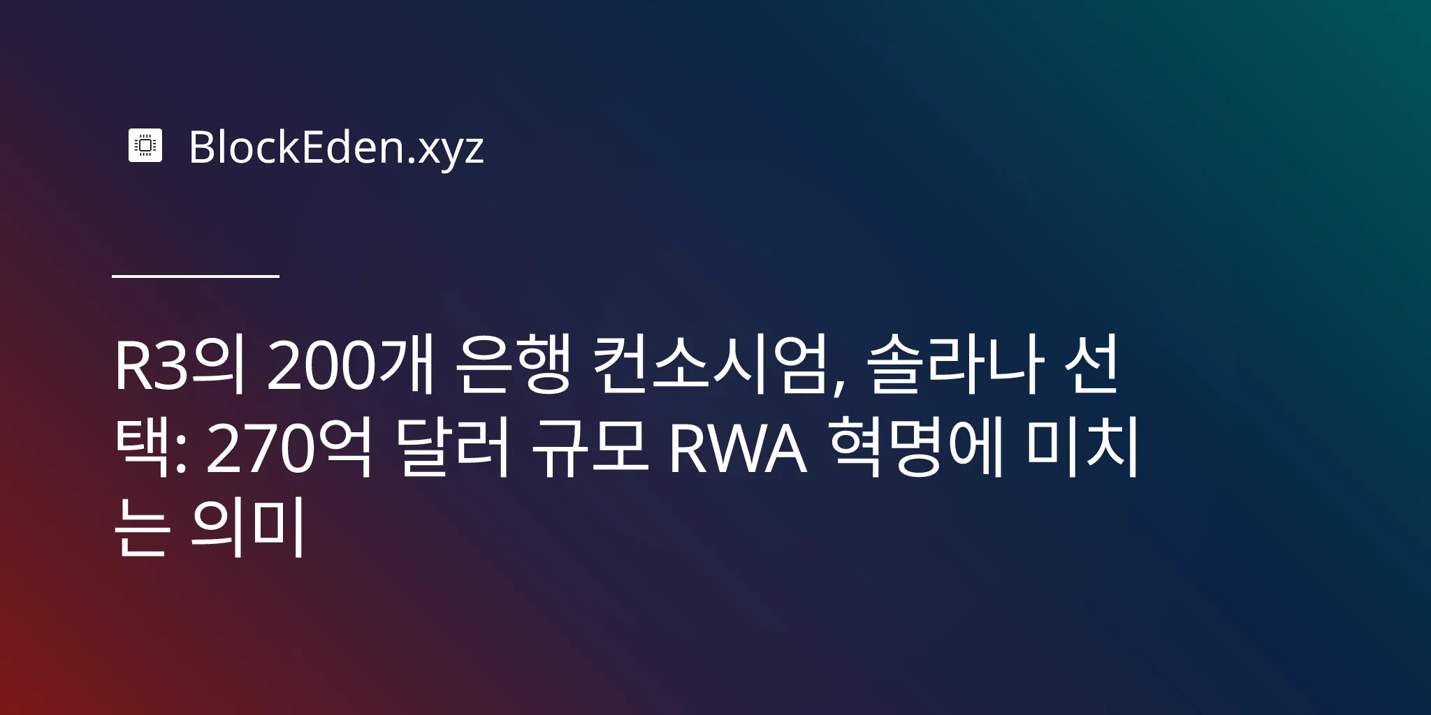 R3의 200개 은행 컨소시엄, 솔라나 선택: 270억 달러 규모 RWA 혁명에 미치는 의미