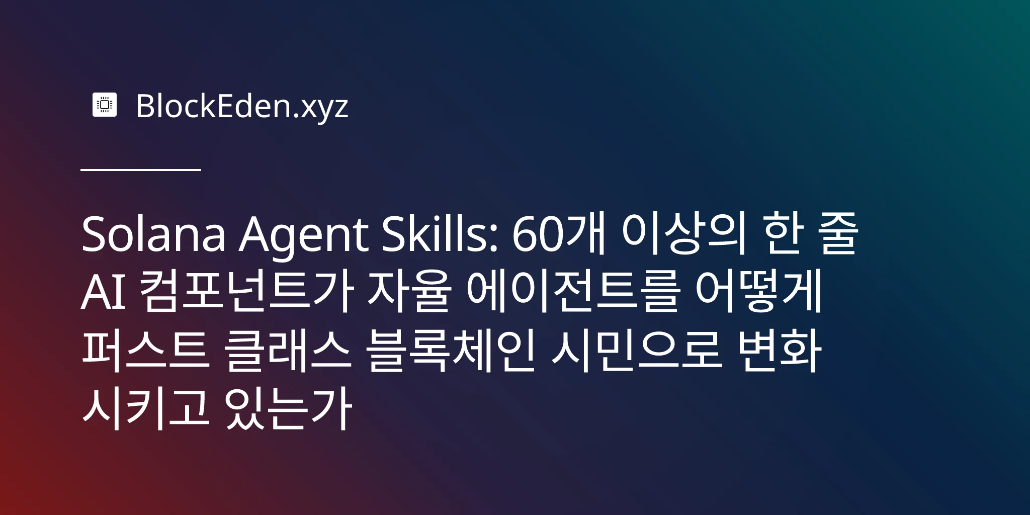 Solana Agent Skills: 60개 이상의 한 줄 AI 컴포넌트가 자율 에이전트를 어떻게 퍼스트 클래스 블록체인 시민으로 변화시키고 있는가