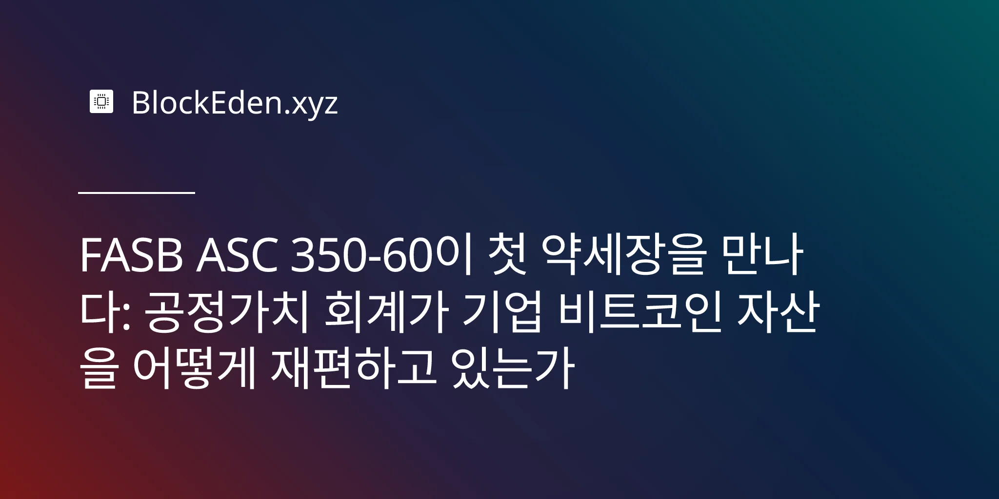 2023년 말 금융회계기준위원회(FASB)가 ASC 350-60을 확정했을 때, 기업 비트코인 보유자들은 기뻐했습니다. 새로운 기준은 회사가 비트코인 손실은 기록할 수 있지만 이익은 절대 인정할 수 없었던 징벌적 손상차손만 적용하는 모델을 대체했고, 대차대조표의 양쪽을 인식하는 공정가치 회계로 전환했습니다. Strategy의 Michael Saylor는 이를 기관투자자 채택의 분수령이라고 불렀습니다. 아무도 예상하지 못한 것은 비트코인이 사상 최고가에서 46% 하락했을 때 그 축하가 얼마나 빨리 분기별 실적 불안으로 변할 것인가 하는 점이었습니다.