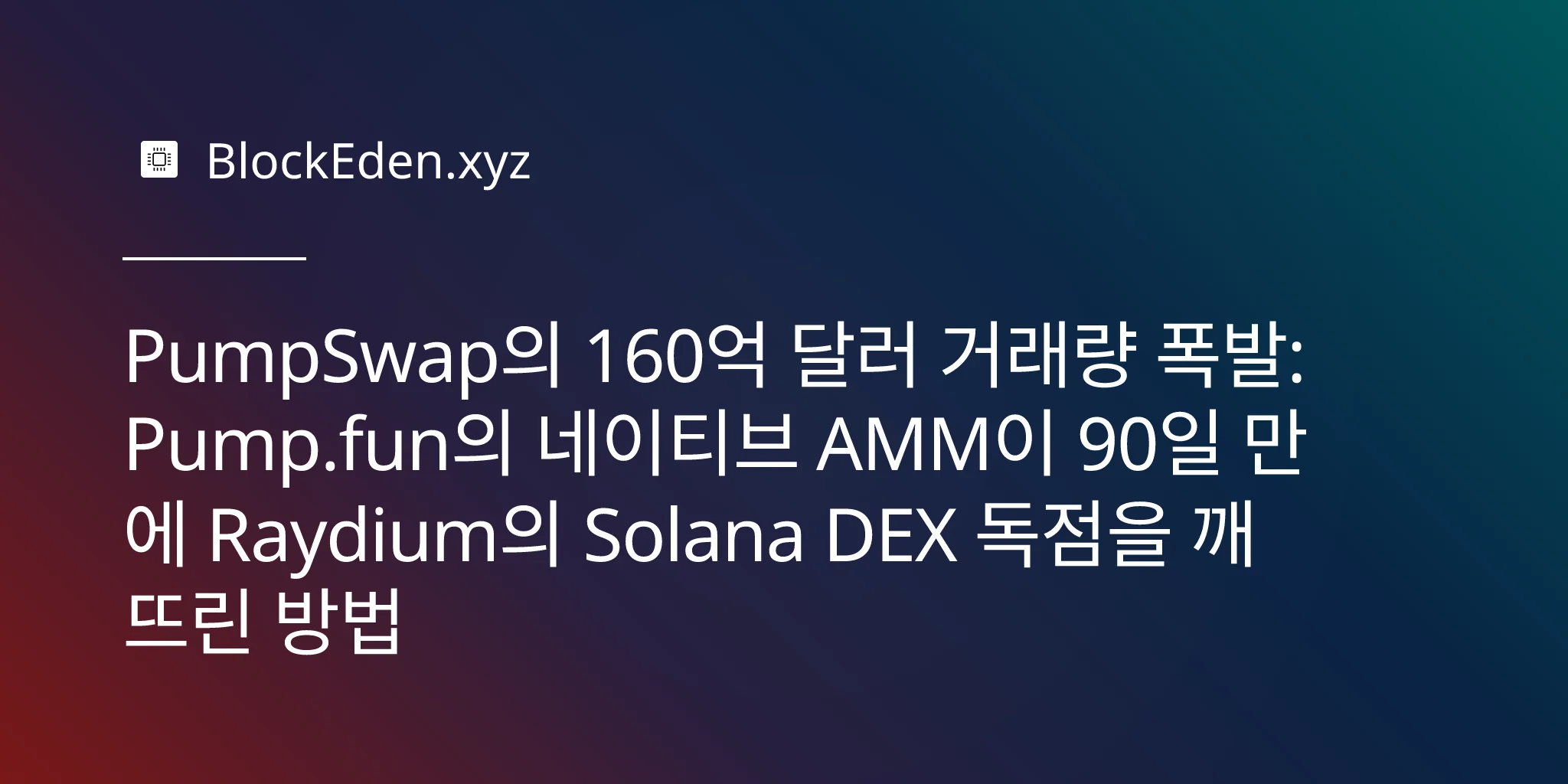 PumpSwap의 160억 달러 거래량 폭발: Pump.fun의 네이티브 AMM이 90일 만에 Raydium의 Solana DEX 독점을 깨뜨린 방법
