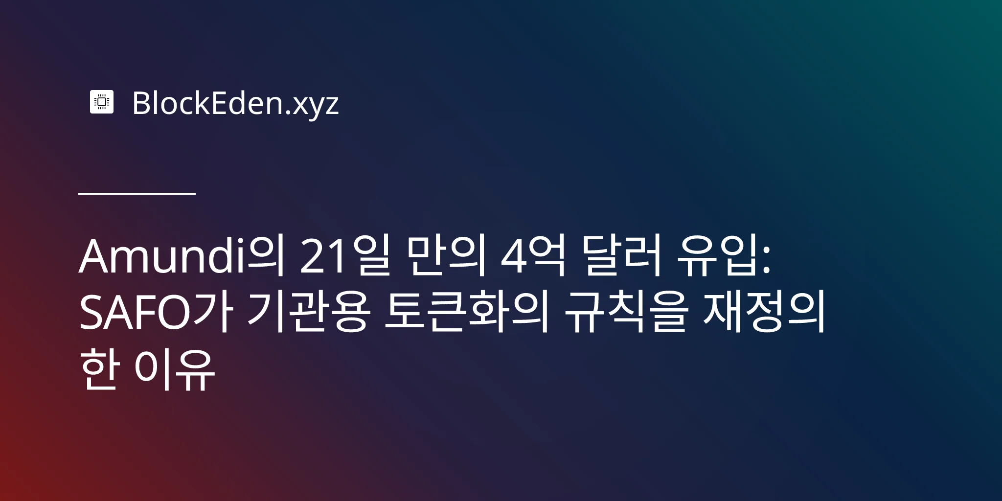 Amundi의 21일 만의 4억 달러 유입: SAFO가 기관용 토큰화의 규칙을 재정의한 이유