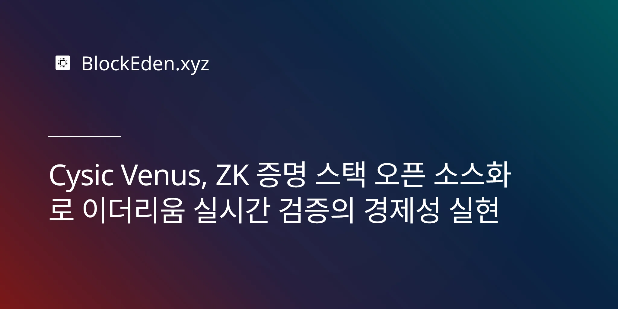 Cysic Venus, ZK 증명 스택 오픈 소스화로 이더리움 실시간 검증의 경제성 실현
