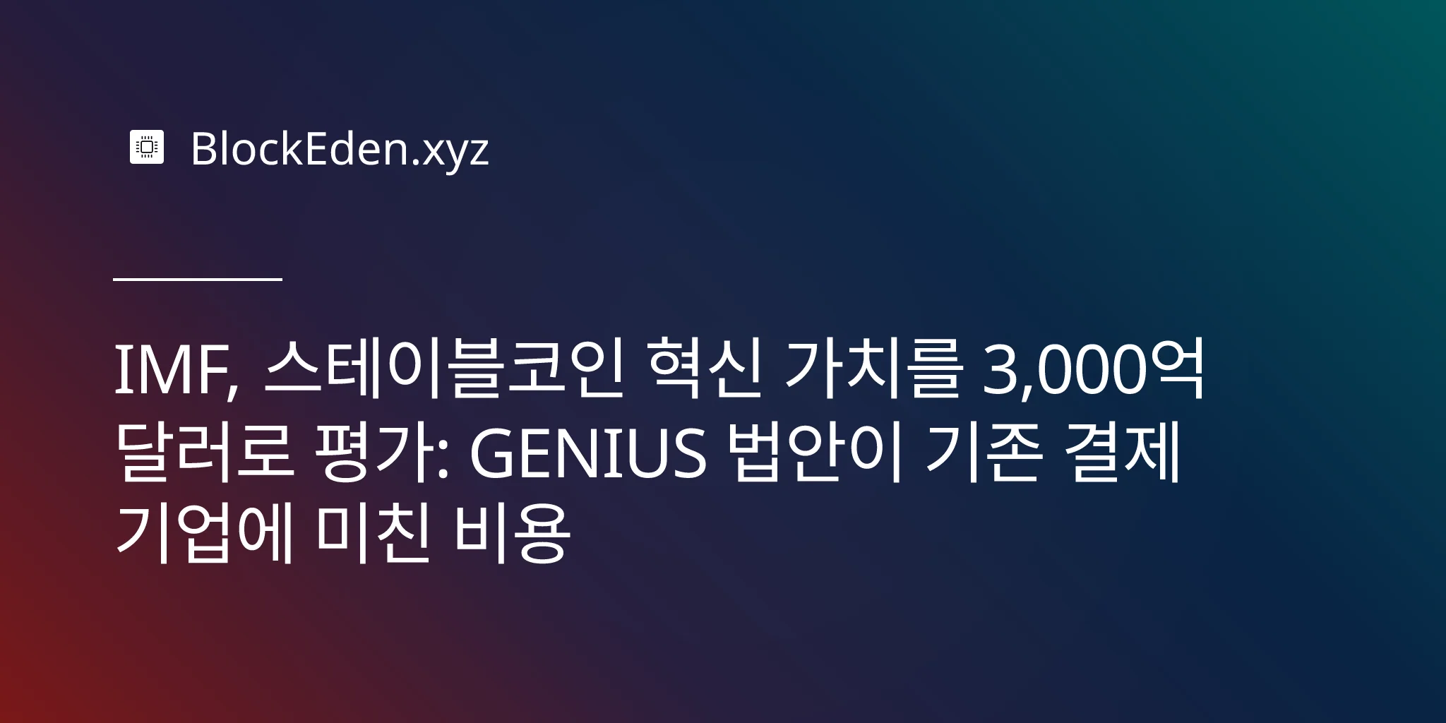 IMF, 스테이블코인 혁신 가치를 3,000억 달러로 평가: GENIUS 법안이 기존 결제 기업에 미친 비용