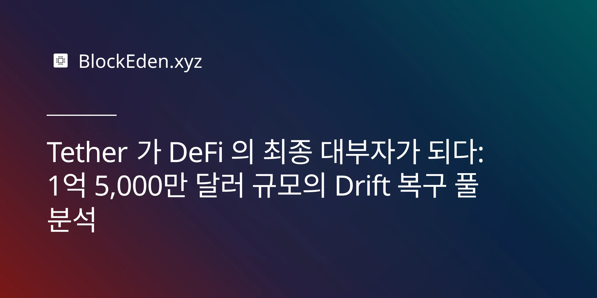 Tether 가 DeFi 의 최종 대부자가 되다: 1억 5,000만 달러 규모의 Drift 복구 풀 분석