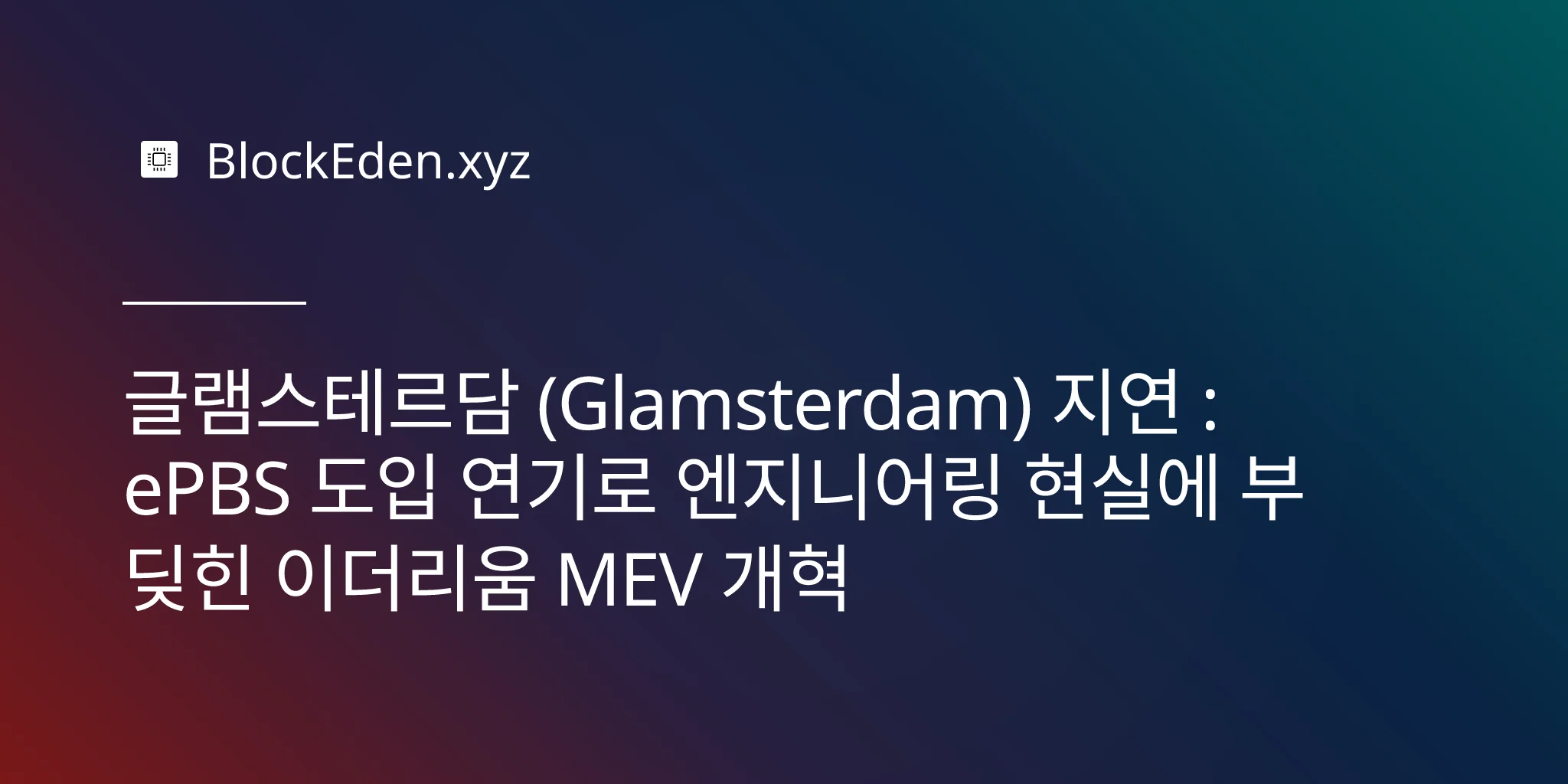 글램스테르담 (Glamsterdam) 지연 : ePBS 도입 연기로 엔지니어링 현실에 부딪힌 이더리움 MEV 개혁