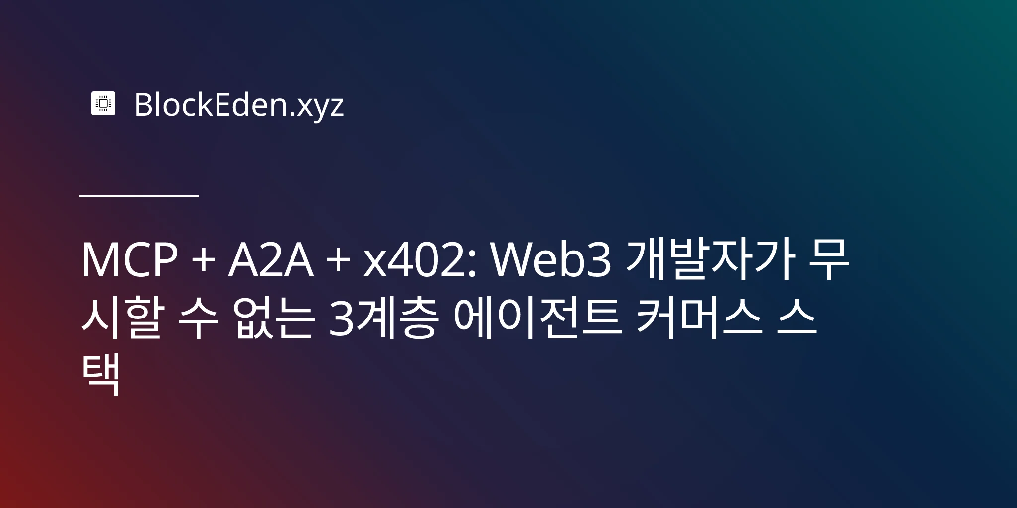 구글의 A2A (Agent-to-Agent) 프로토콜, 앤스로픽 (Anthropic)의 MCP (Model Context Protocol), 그리고 x402 결제 프로토콜이라는 세 가지 표준이 동시에 실제 환경에 적용되면서, 개발자들이 현재 '3계층 에이전트 커머스 스택'이라 부르는 체계가 형성되었습니다. Web3 엔지니어들에게 있어 이 세 가지를 모두 지원할 수 있는 기회의 창은 지난달 조용히 닫혔습니다. A2A, MCP, x402를 동시에 구사하지 못하는 에이전트들은 이미 상호운용성이 더 뛰어난 다른 에이전트들에 의해 외면받고 있습니다.