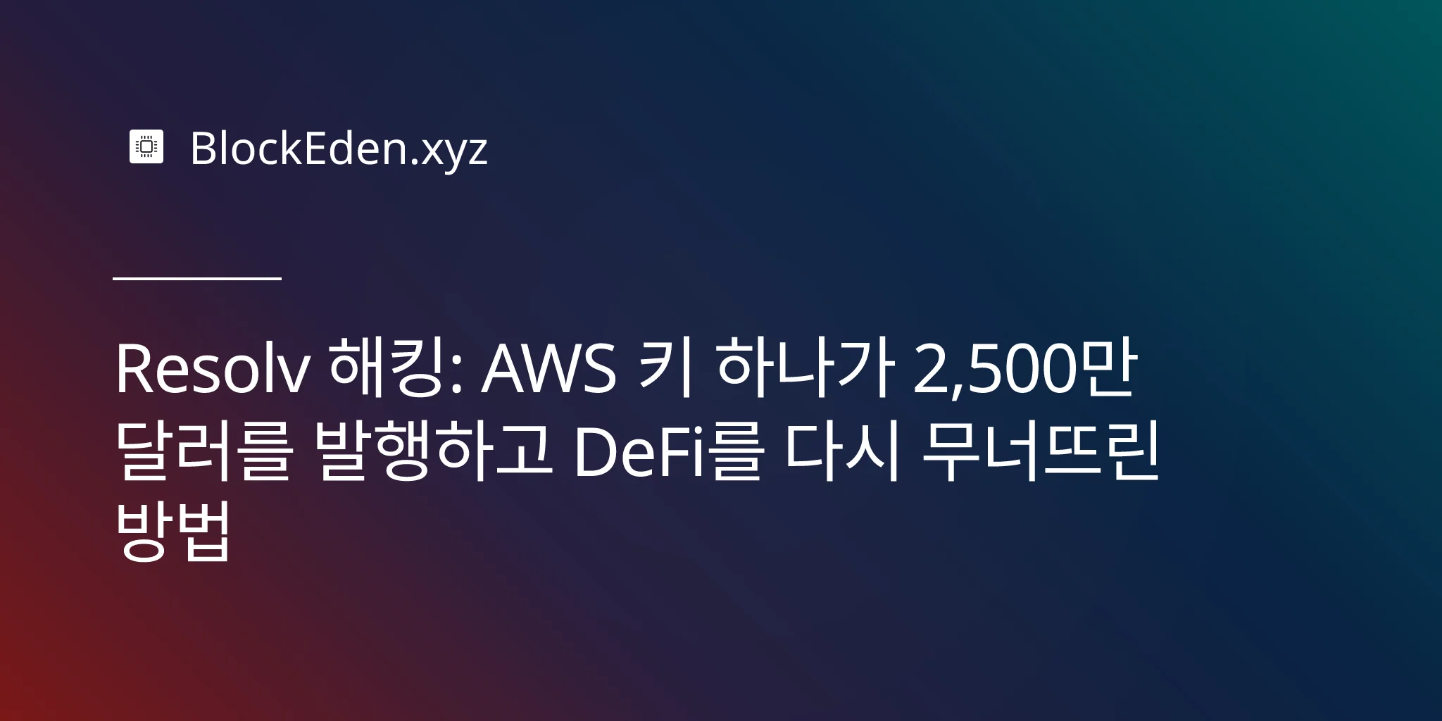 Resolv 해킹: AWS 키 하나가 2,500만 달러를 발행하고 DeFi를 다시 무너뜨린 방법