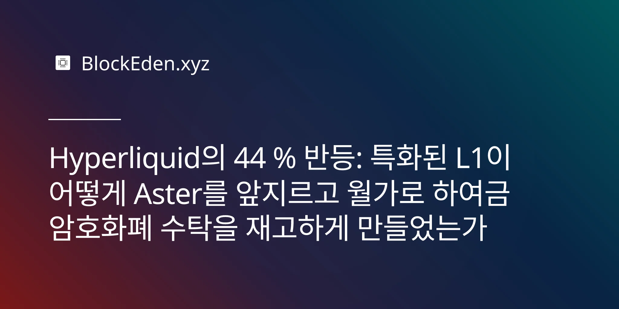 Hyperliquid의 44 % 반등: 특화된 L1이 어떻게 Aster를 앞지르고 월가로 하여금 암호화폐 수탁을 재고하게 만들었는가