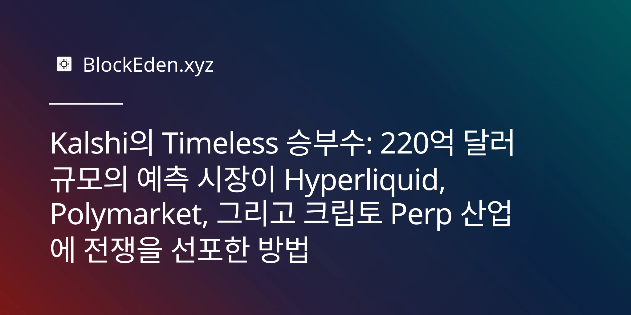 Kalshi의 Timeless 승부수: 220억 달러 규모의 예측 시장이 Hyperliquid, Polymarket, 그리고 크립토 Perp 산업에 전쟁을 선포한 방법