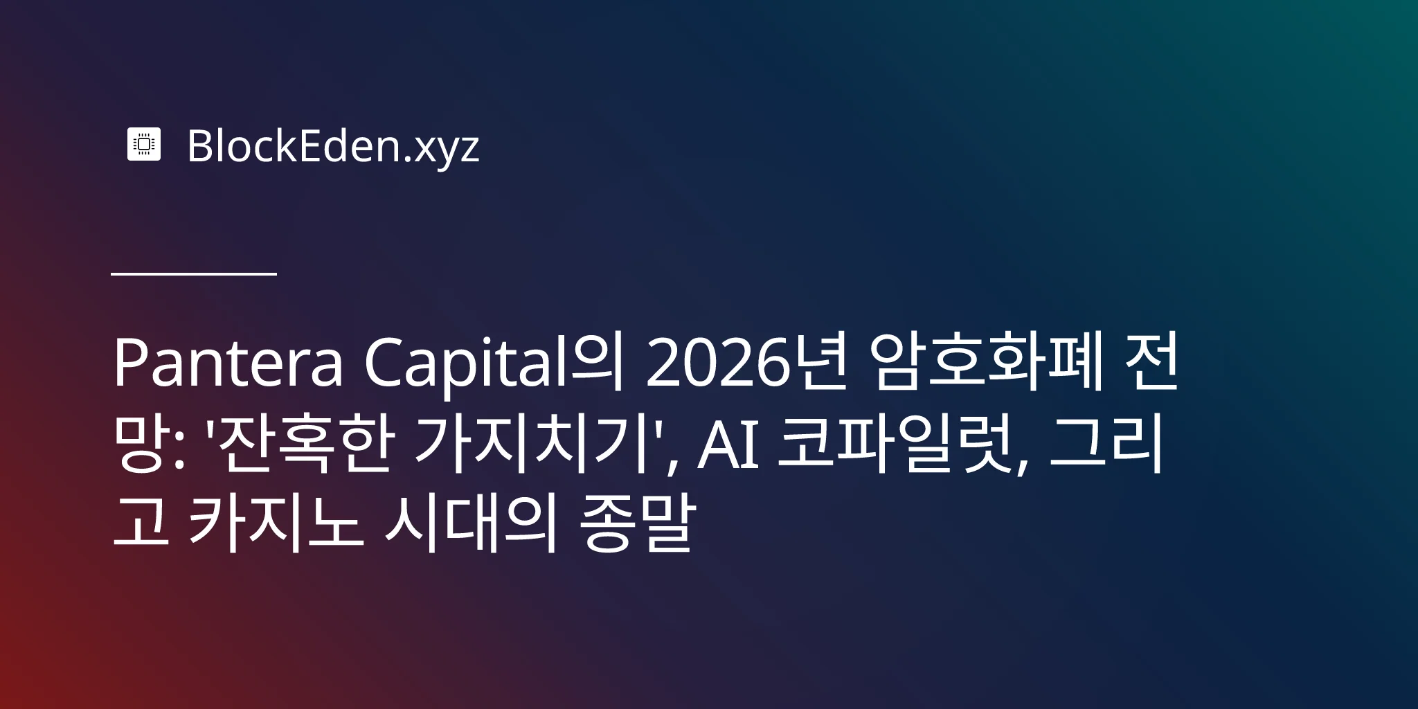 Pantera Capital의 2026년 암호화폐 전망: '잔혹한 가지 치기', AI 코파일럿, 그리고 카지노 시대의 종말