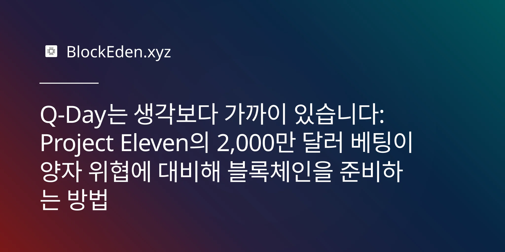 Q-Day는 생각보다 가까이 있습니다: Project Eleven의 2,000만 달러 베팅이 양자 위협에 대비해 블록체인을 준비하는 방법