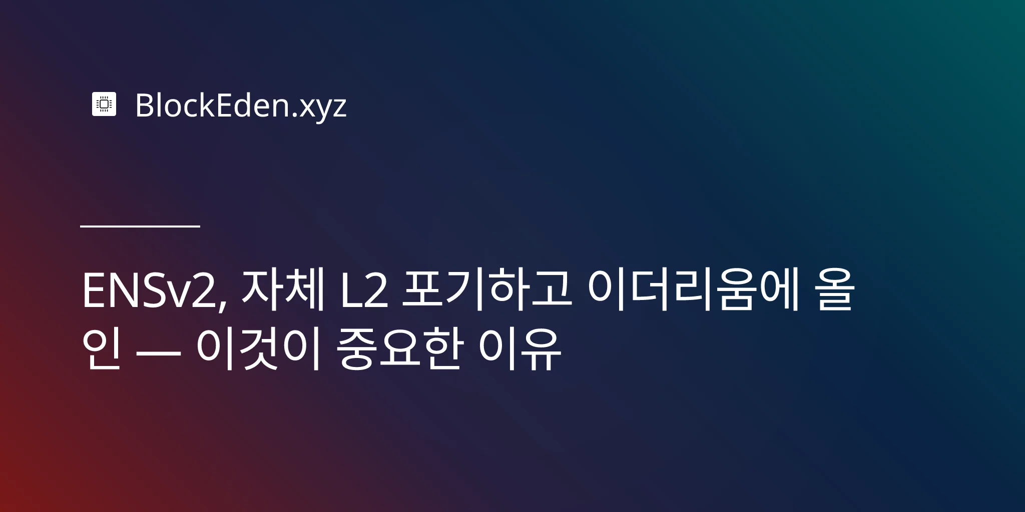 ENSv2, 자체 L2 포기하고 이더리움에 올인 — 이것이 중요한 이유