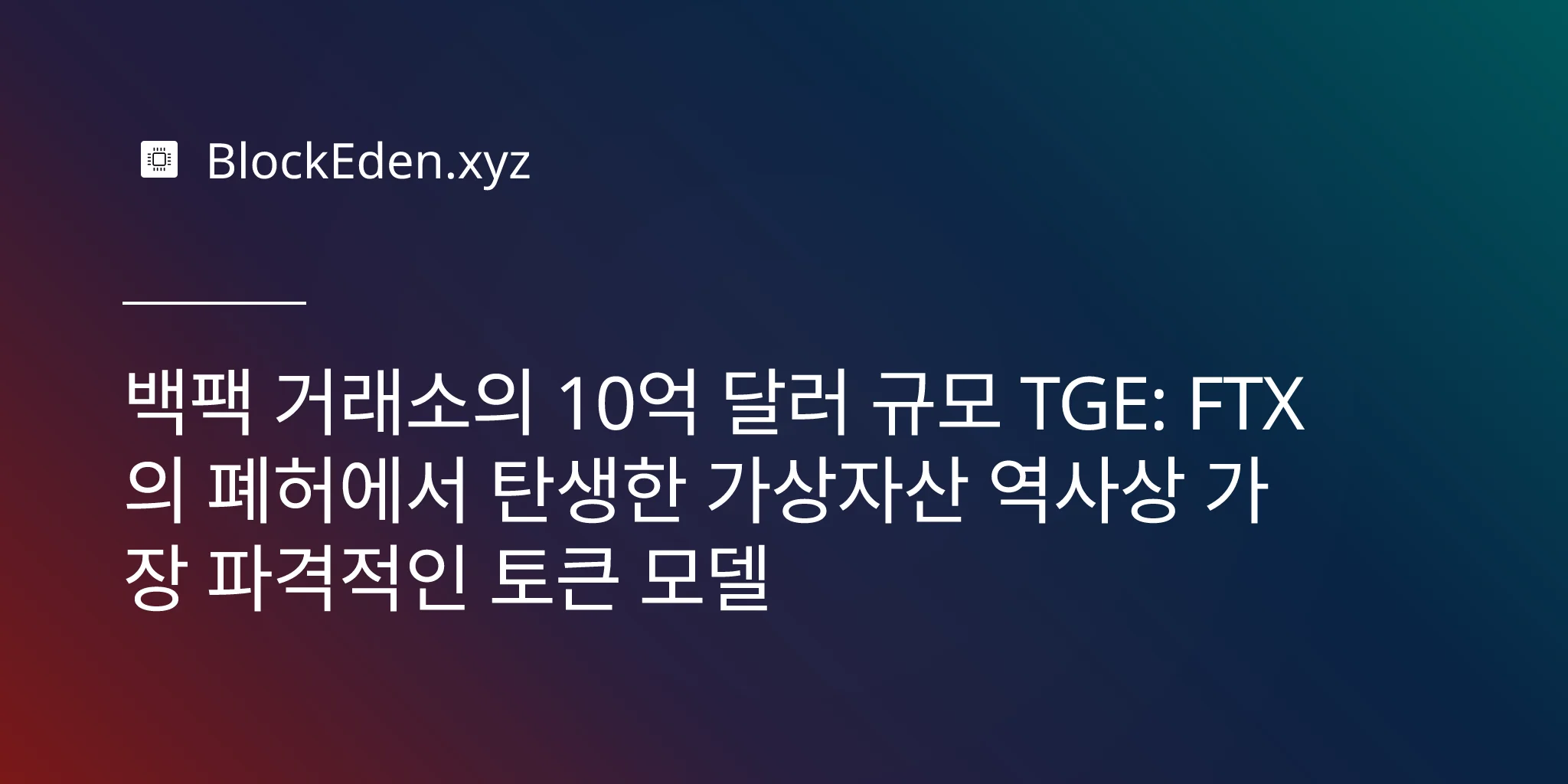 백팩 거래소의 10억 달러 규모 TGE: FTX의 폐허에서 탄생한 가상자산 역사상 가장 파격적인 토큰 모델