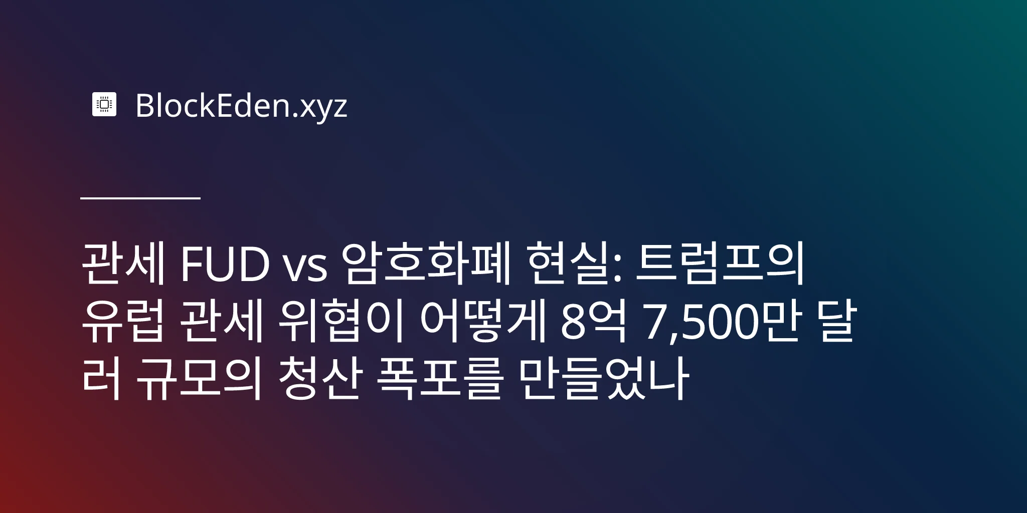 관세 FUD vs 암호화폐 현실: 트럼프의 유럽 관세 위협이 어떻게 8억 7,500만 달러 규모의 청산 폭포를 만들었나