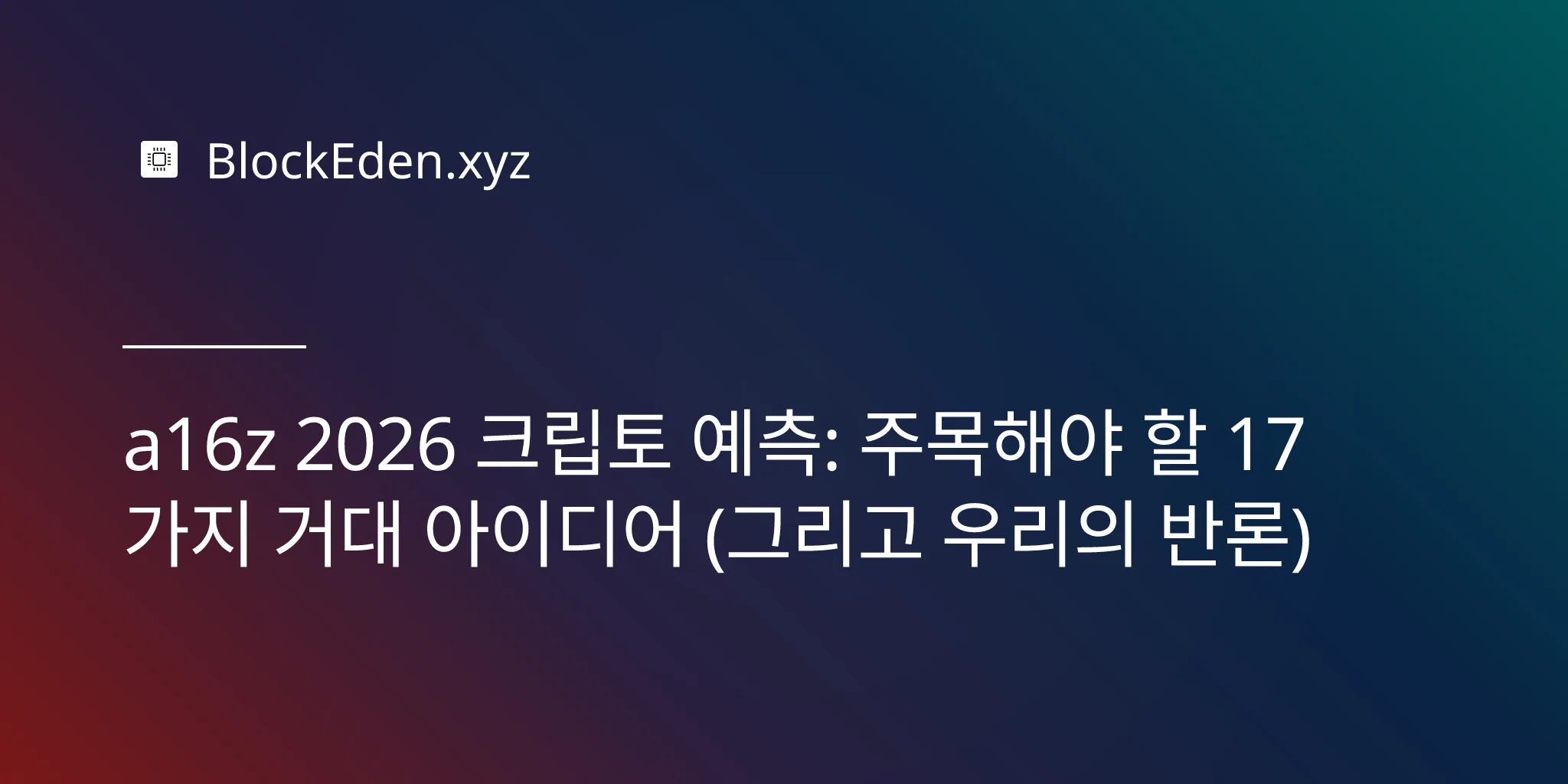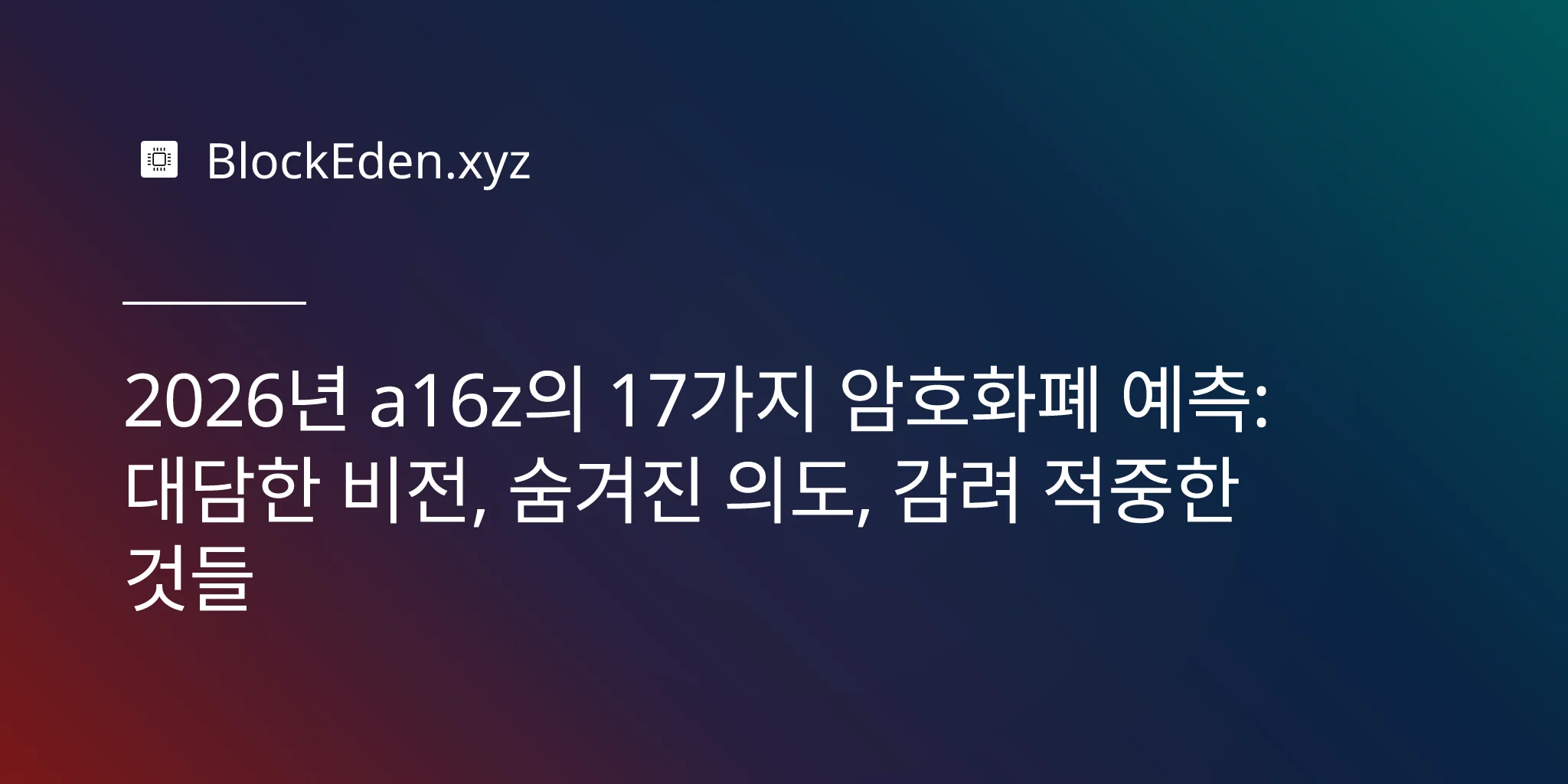 세계 최대의 암호화폐 중심 벤처 캐피털 회사가 연례 예측을 발표하면 업계는 주목합니다. 하지만 안드레센 호로위츠(Andreessen Horowitz)가 2026년에 대해 말하는 모든 것을 믿어야 할까요?