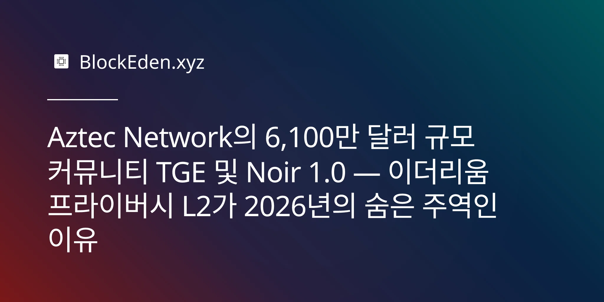 Aztec Network의 6,100만 달러 규모 커뮤니티 TGE 및 Noir 1.0 — 이더리움 프라이버시 L2가 2026년의 숨은 주역인 이유