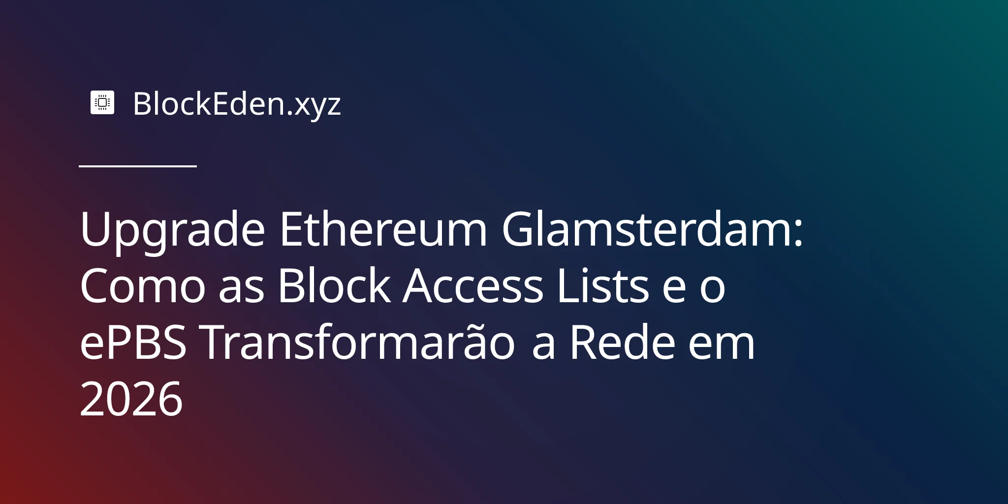 Upgrade Ethereum Glamsterdam: Como as Block Access Lists e o ePBS Transformarão a Rede em 2026