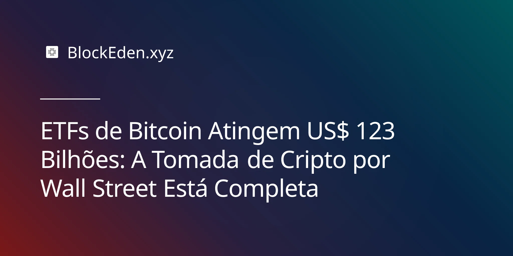 ETFs de Bitcoin Atingem US$ 123 Bilhões: A Tomada de Cripto por Wall Street Está Completa