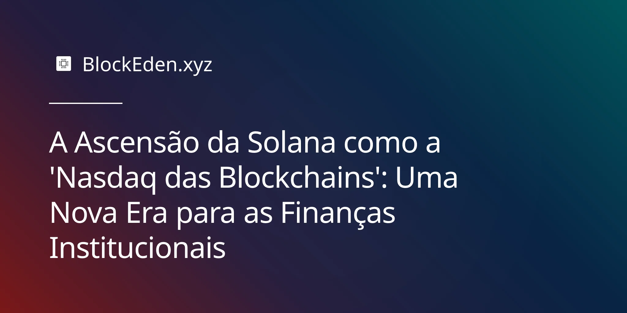 A Ascensão da Solana como a 'Nasdaq das Blockchains': Uma Nova Era para as Finanças Institucionais