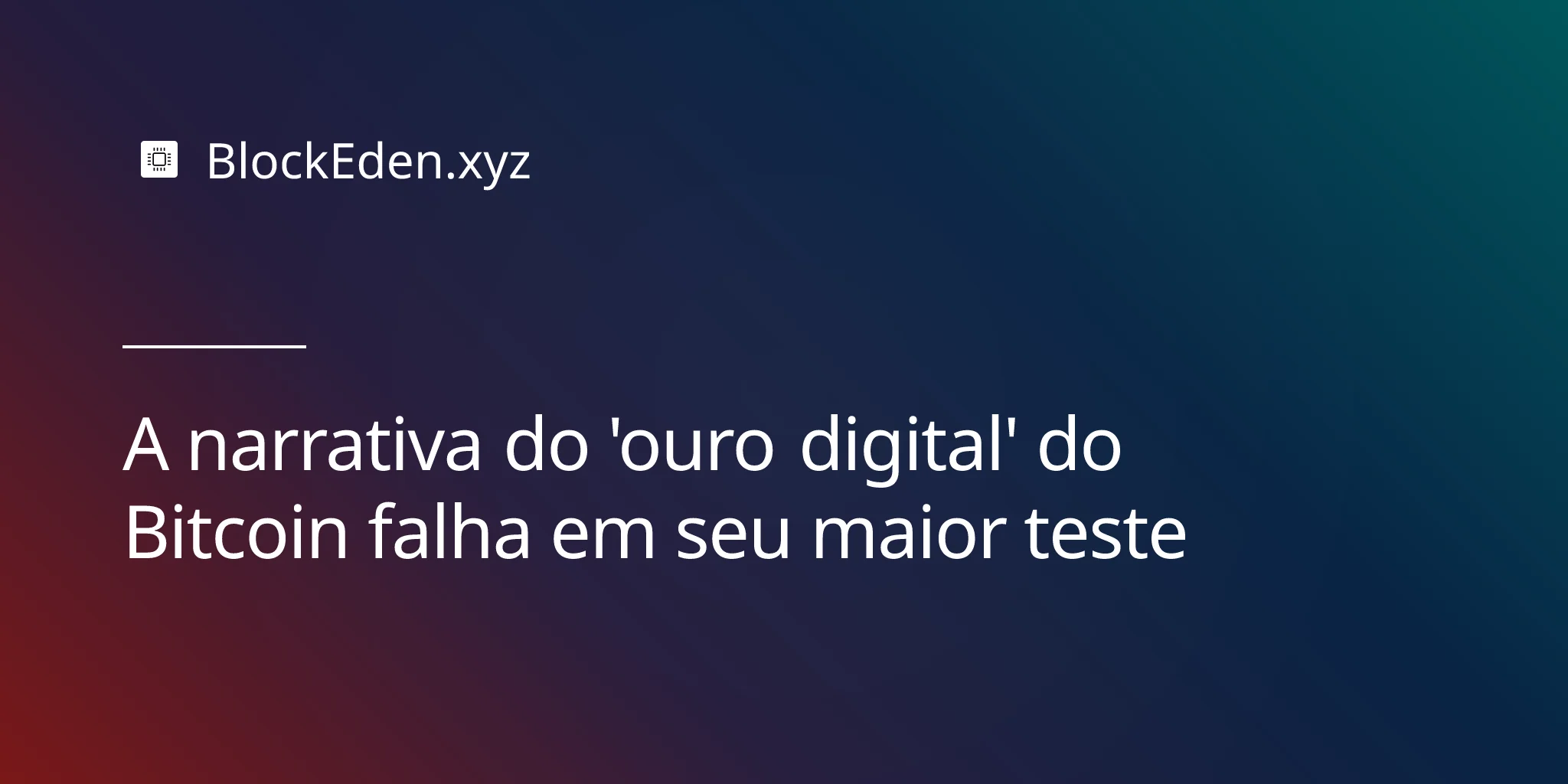 Por ora, a narrativa do "ouro digital" é mais bem compreendida como direcional mente correta ao longo de um horizonte de tempo de uma década e demonstravelmente incorreta ao longo de um horizonte de vários meses. Investidores que entendem a distinção dimensionarão e farão hedge de suas posições em Bitcoin de acordo — e pararão de se surpreender quando o BTC cair no mesmo dia em que o ouro estabelece uma nova máxima histórica.