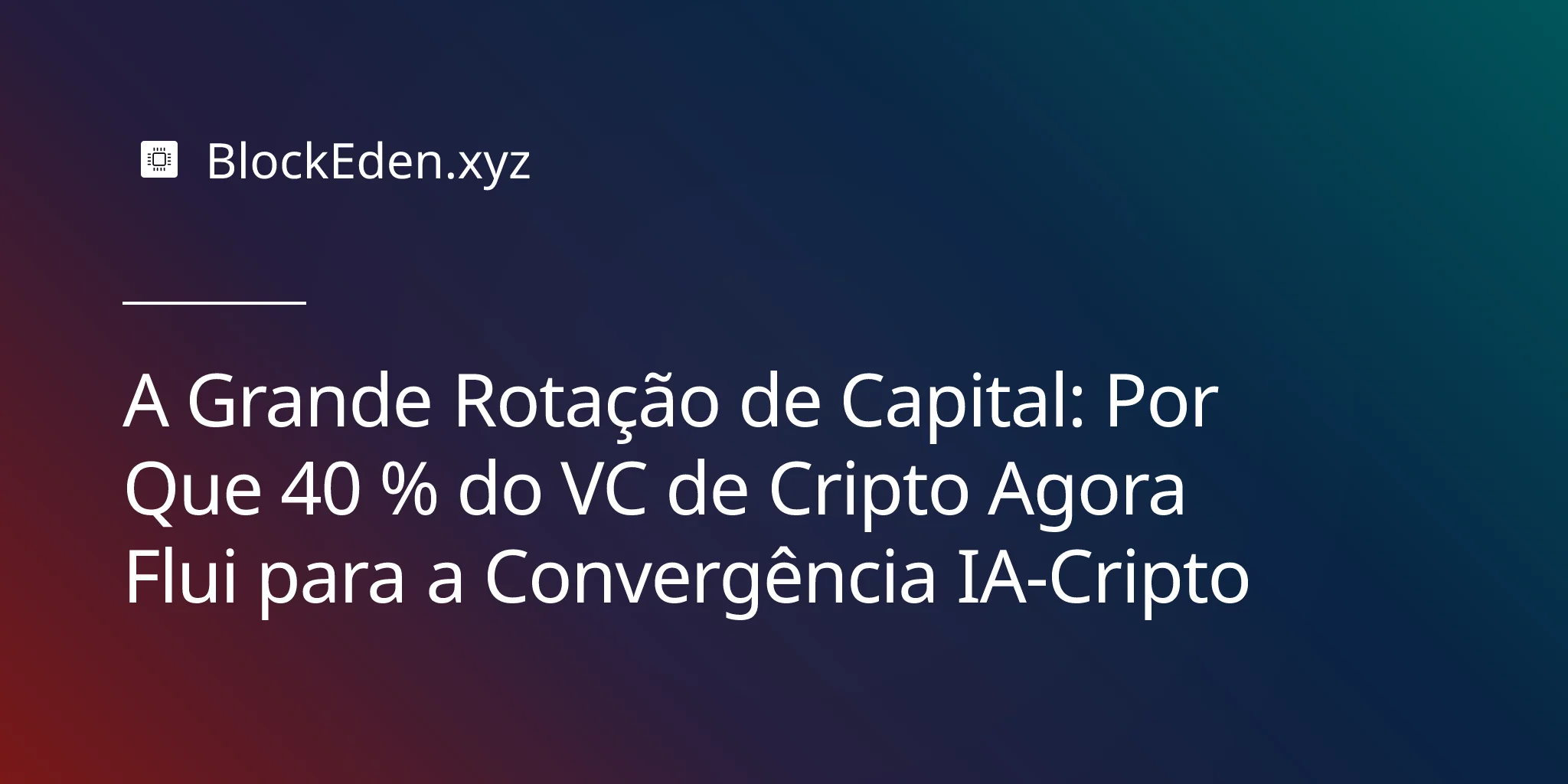 A Grande Rotação de Capital: Por Que 40 % do VC de Cripto Agora Flui para a Convergência IA-Cripto